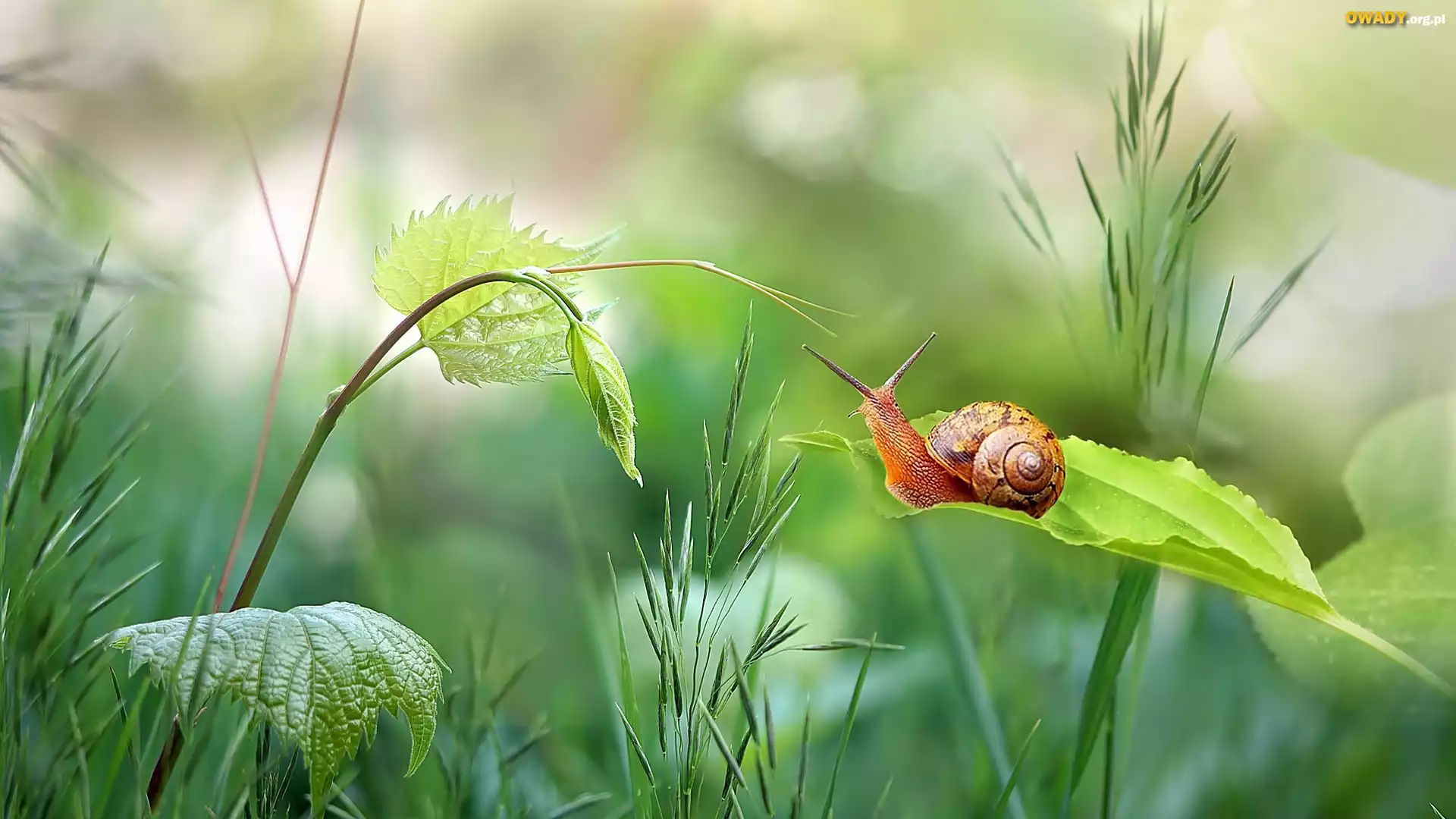 Ślimak, Trawa, Liście, Łąka, Makro
