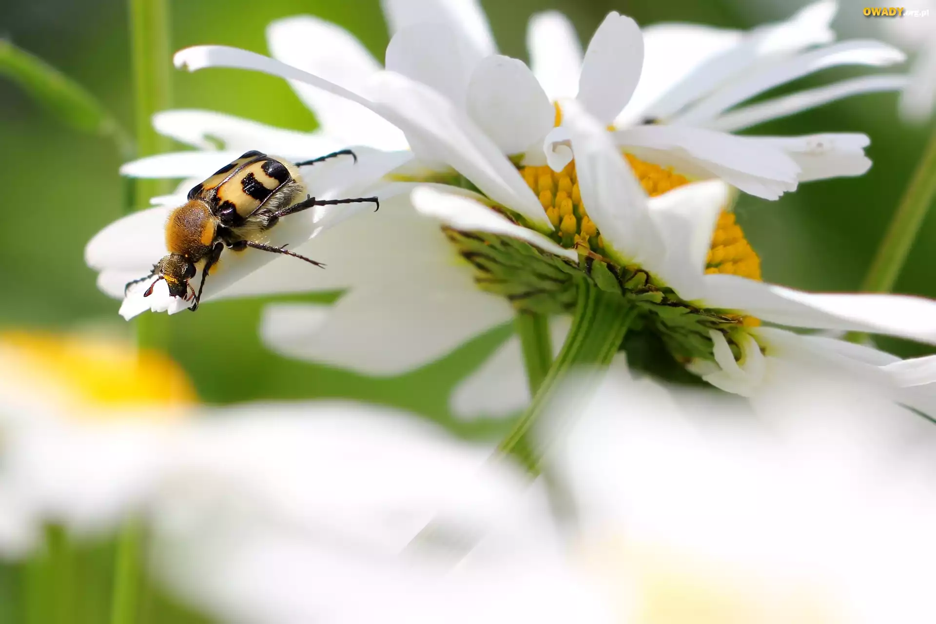 Białe, Kwiaty, Chrząszcz, Orszoł prążkowany