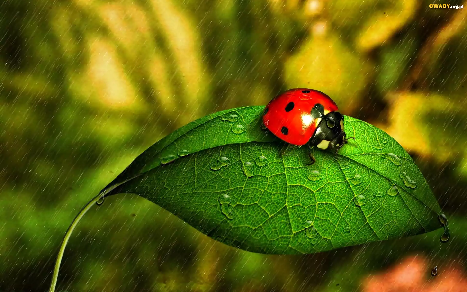 Biedronka, Listek, Deszcz, Krople