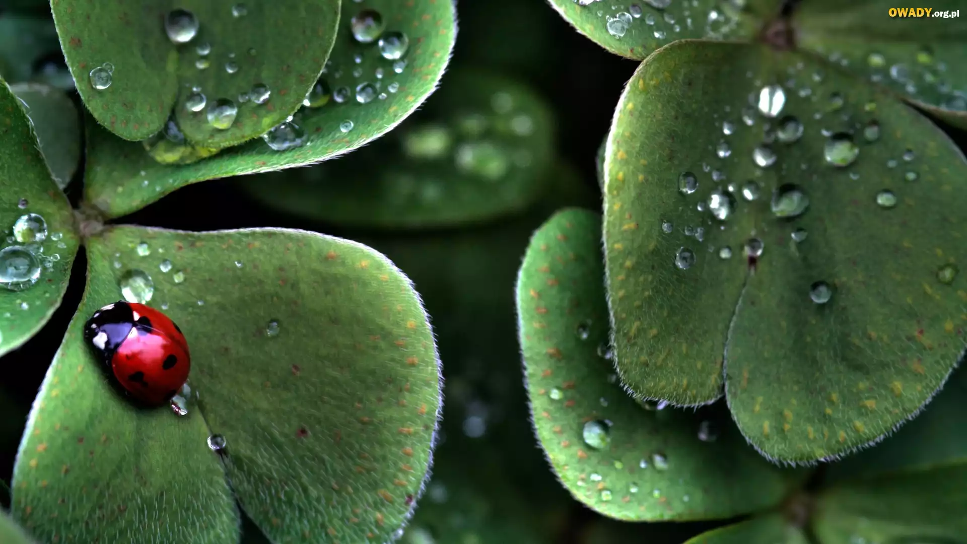 Biedronka, Liście, Zielone, Krople, Rosa