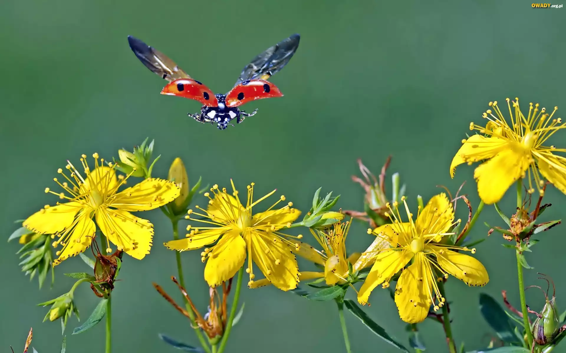 Biedronka, W Locie, Żółte, Kwiaty, Dziurawiec