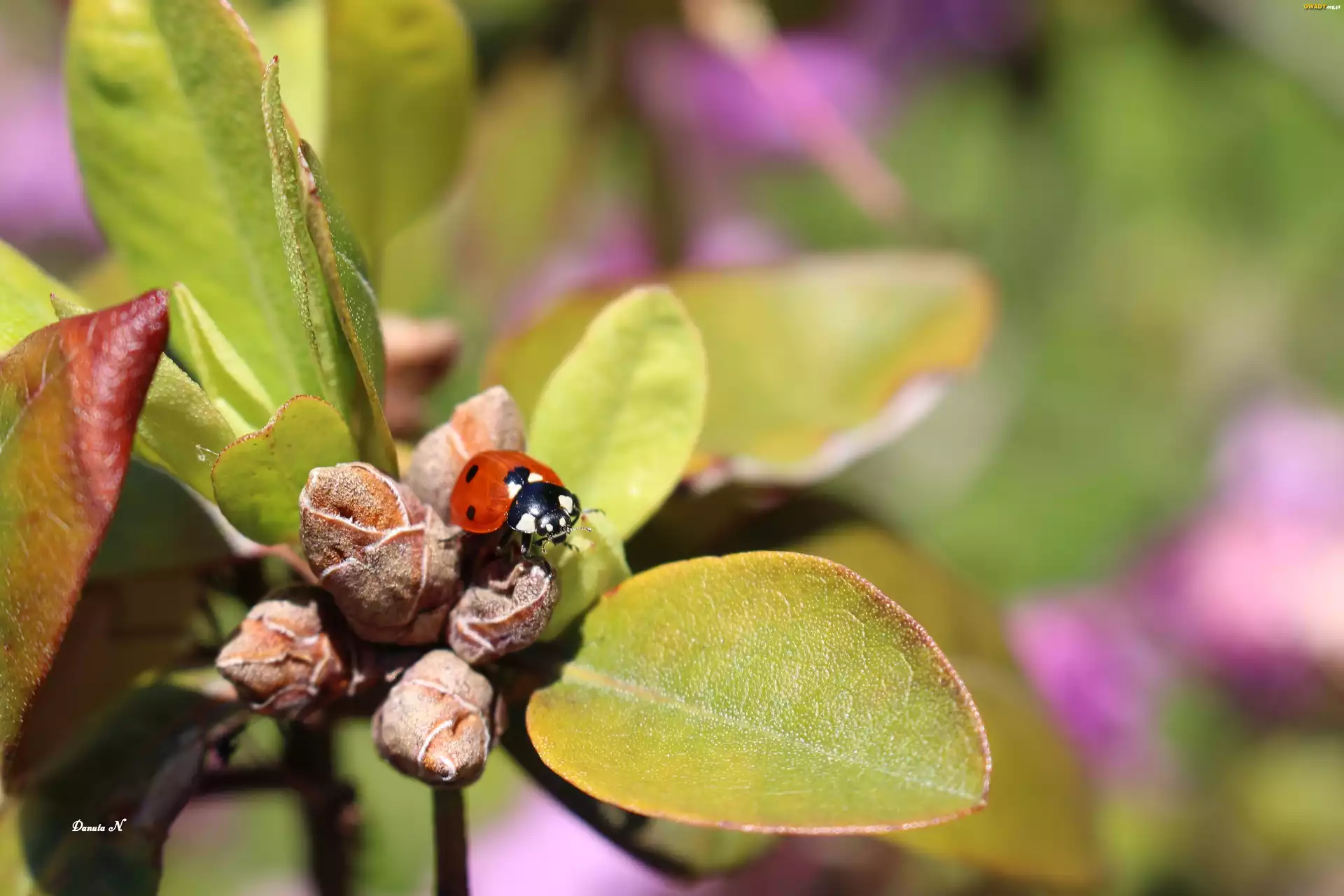 Biedronka, Pąki, Rododendronu, Liście