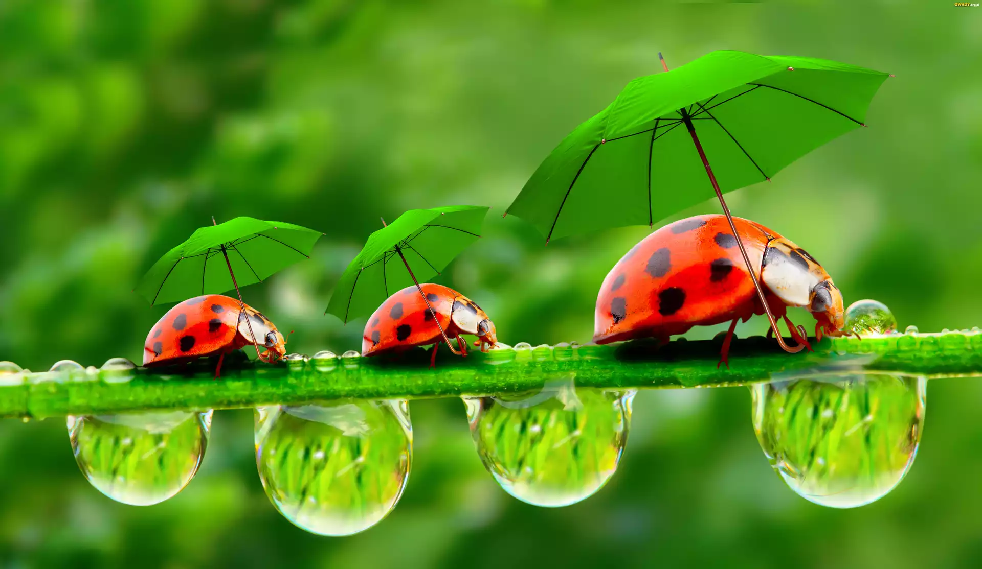Biedronki, Parasole, Krople, Wody