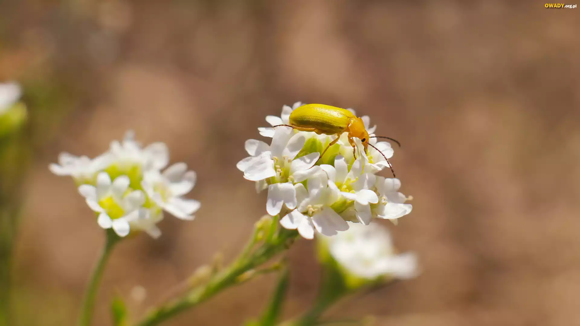 Owad, Chrząszcz, Żółty, Białe, Kwiaty