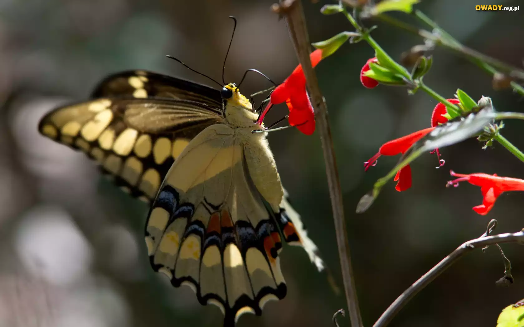 Czerwone, Kwiatuszki, Roślinka, Motyl, Paź królowej
