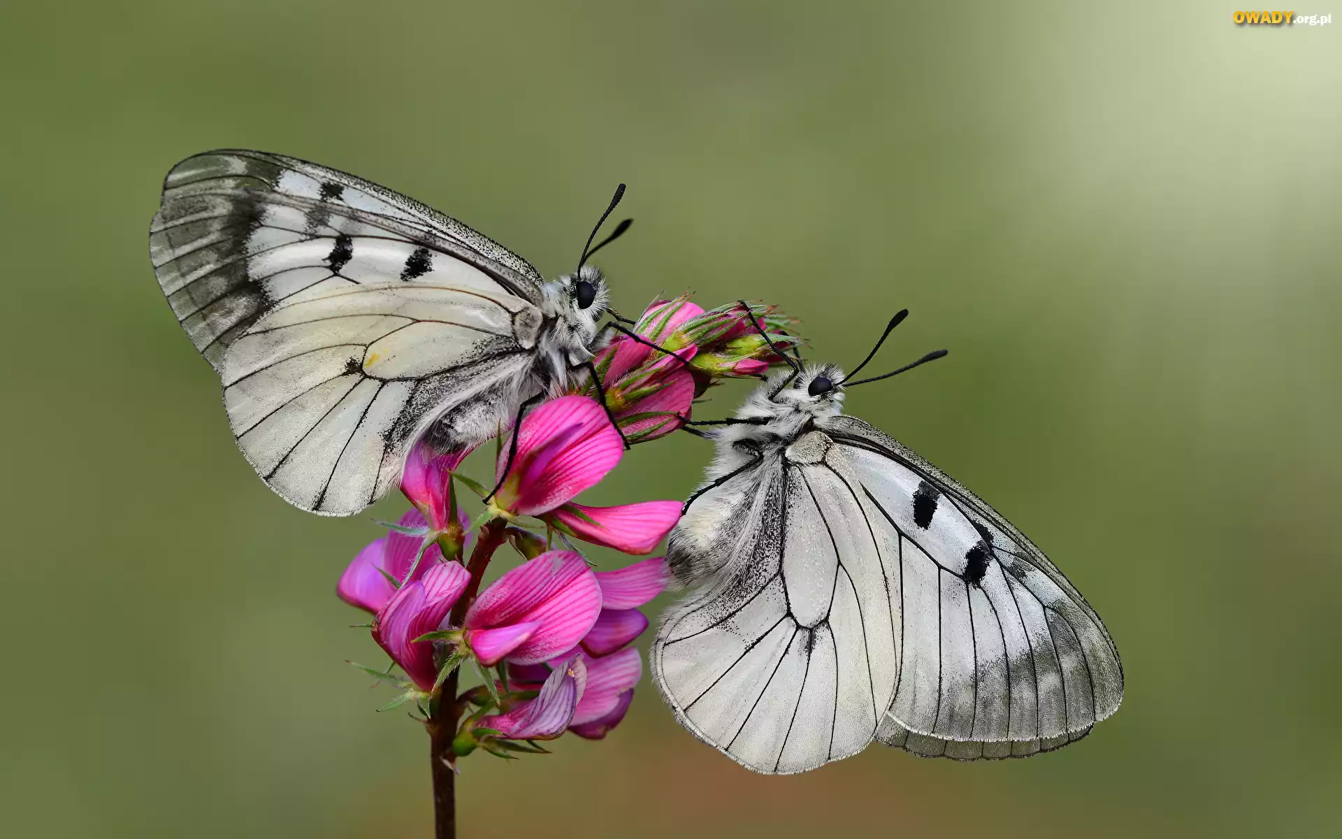 Gałązka, Różowe, Kwiatki, Dwa, Motyle, Niepylaki mnemozyny