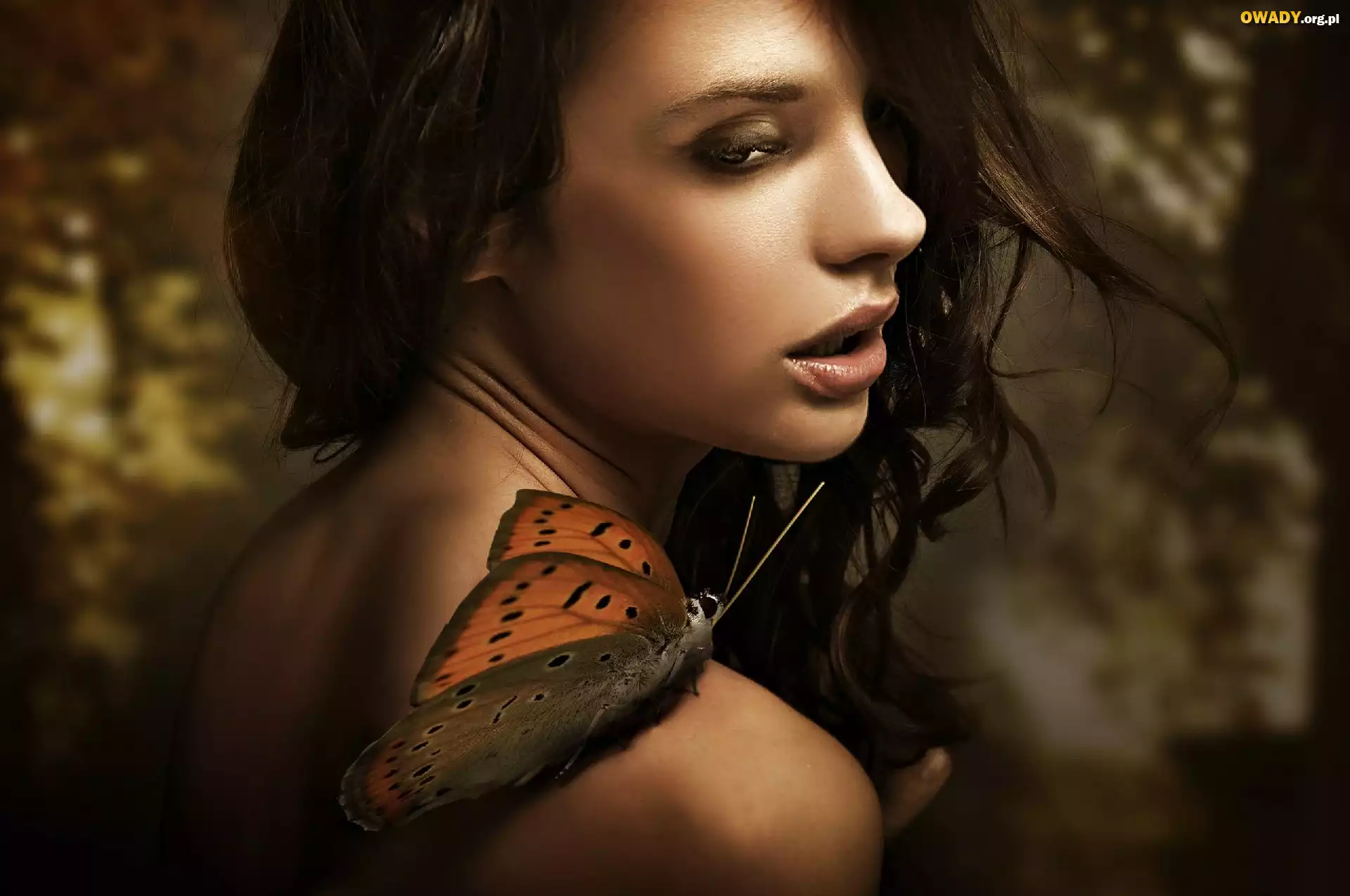 Dziewczyna, Makijaż, Ramie, Motyl