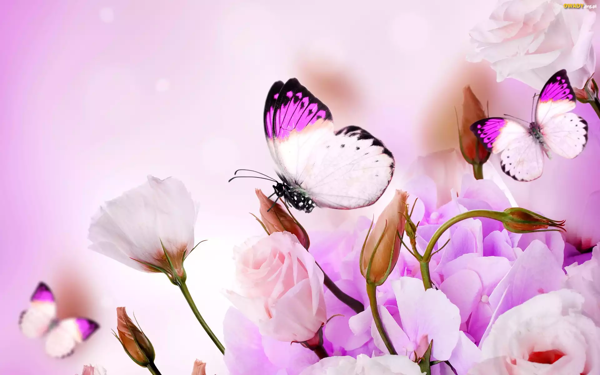 Kwiaty, Eustoma, Motyle