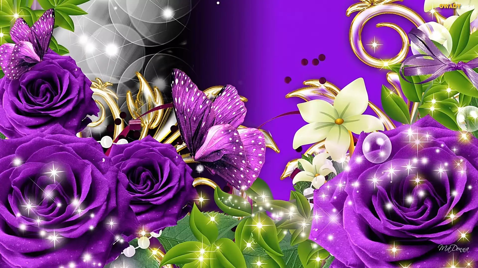 Fioletowe, Róże, Motyl, Art