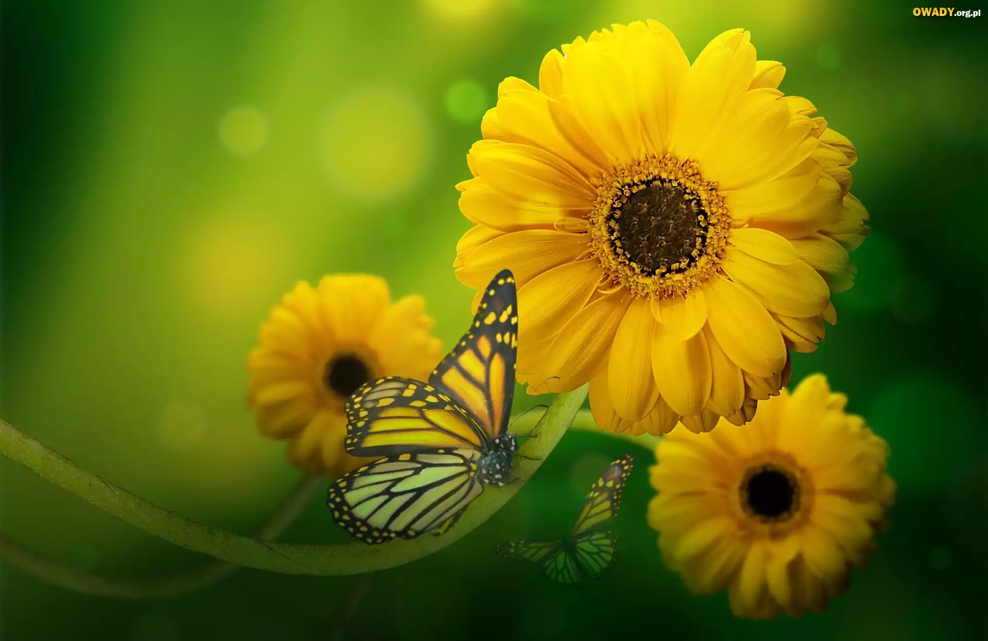 Żółte, Gerbery, Motyle
