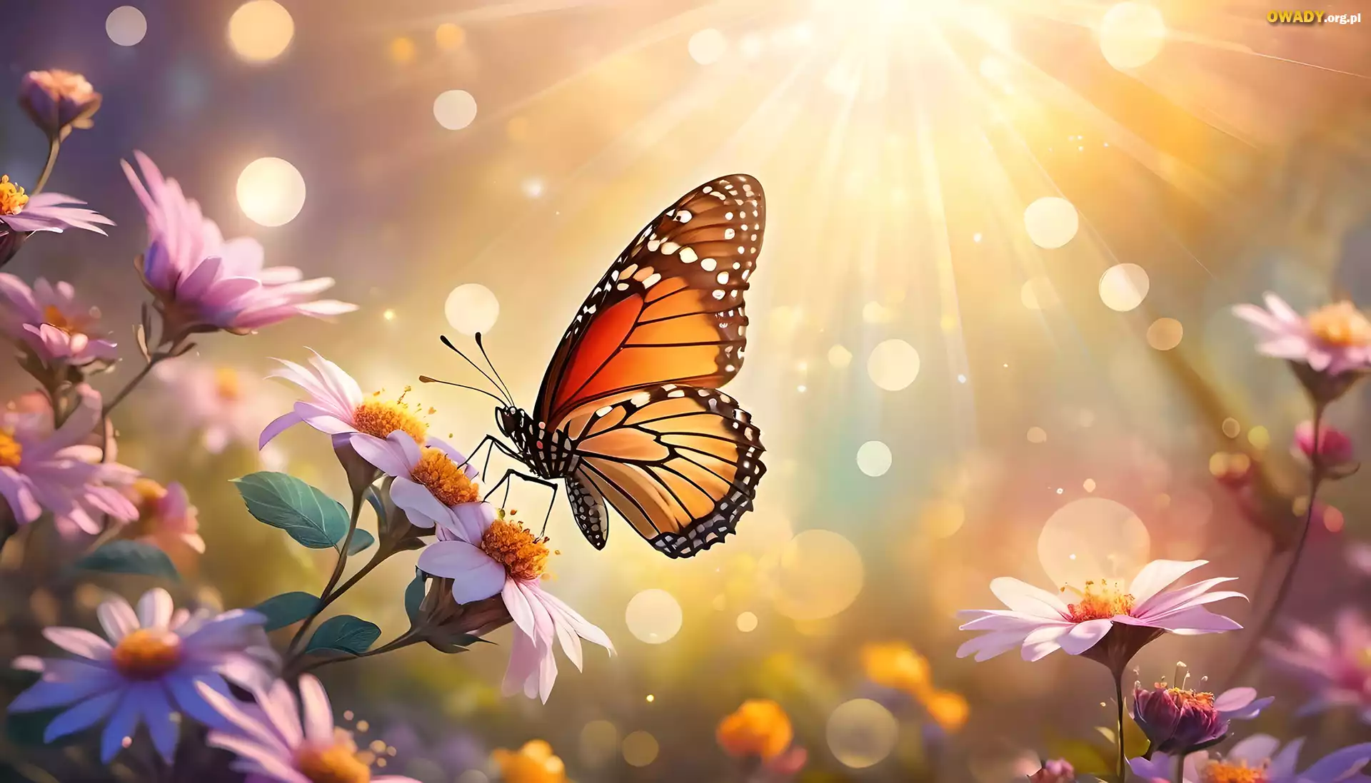 Motyl, Różowe, Kwiaty, Grafika