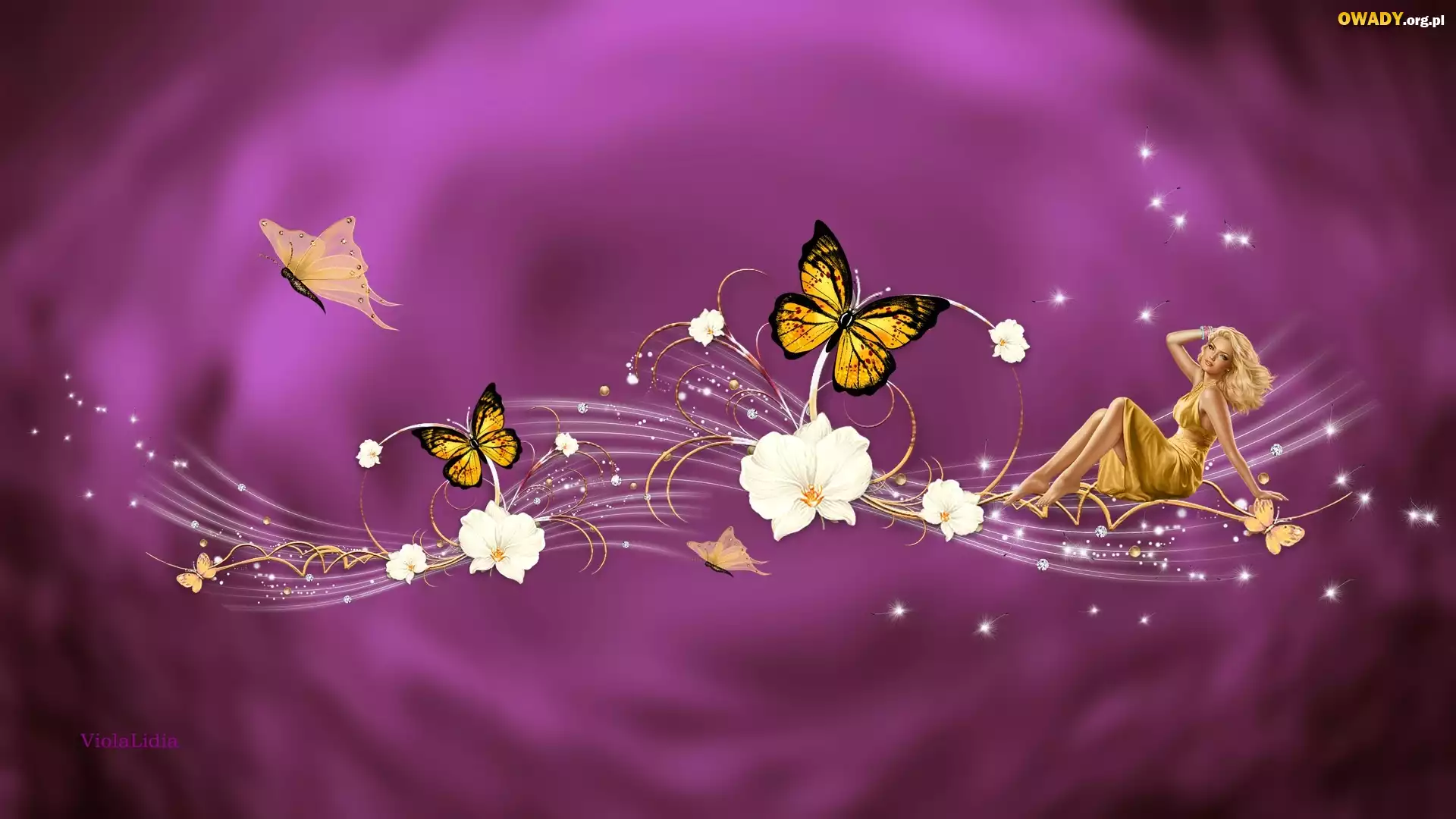 Grafika 2D, Motyle, Kwiaty, Kobieta