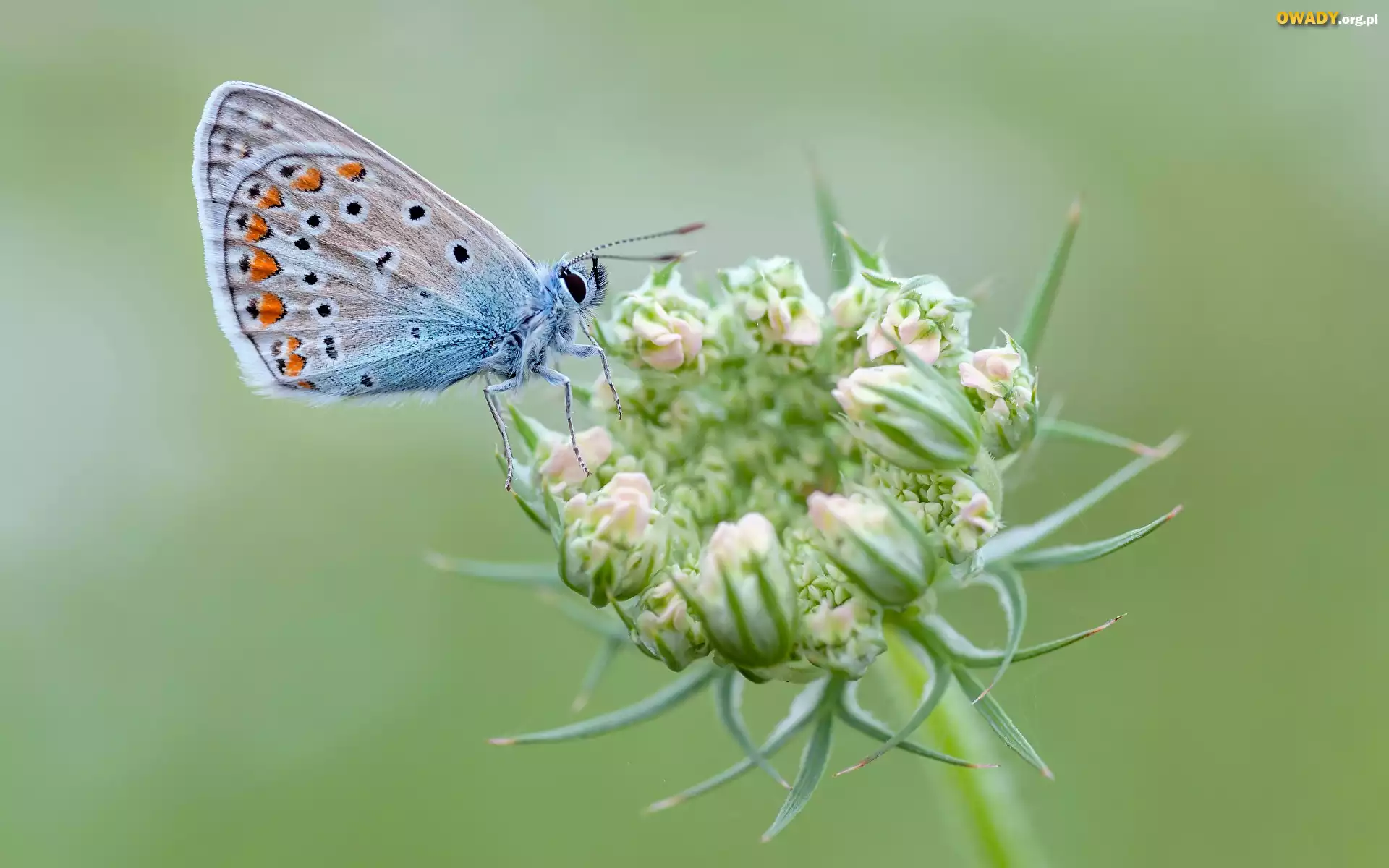 Owad, Motyl, Modraszek ikar, Roślina, Zbliżenie