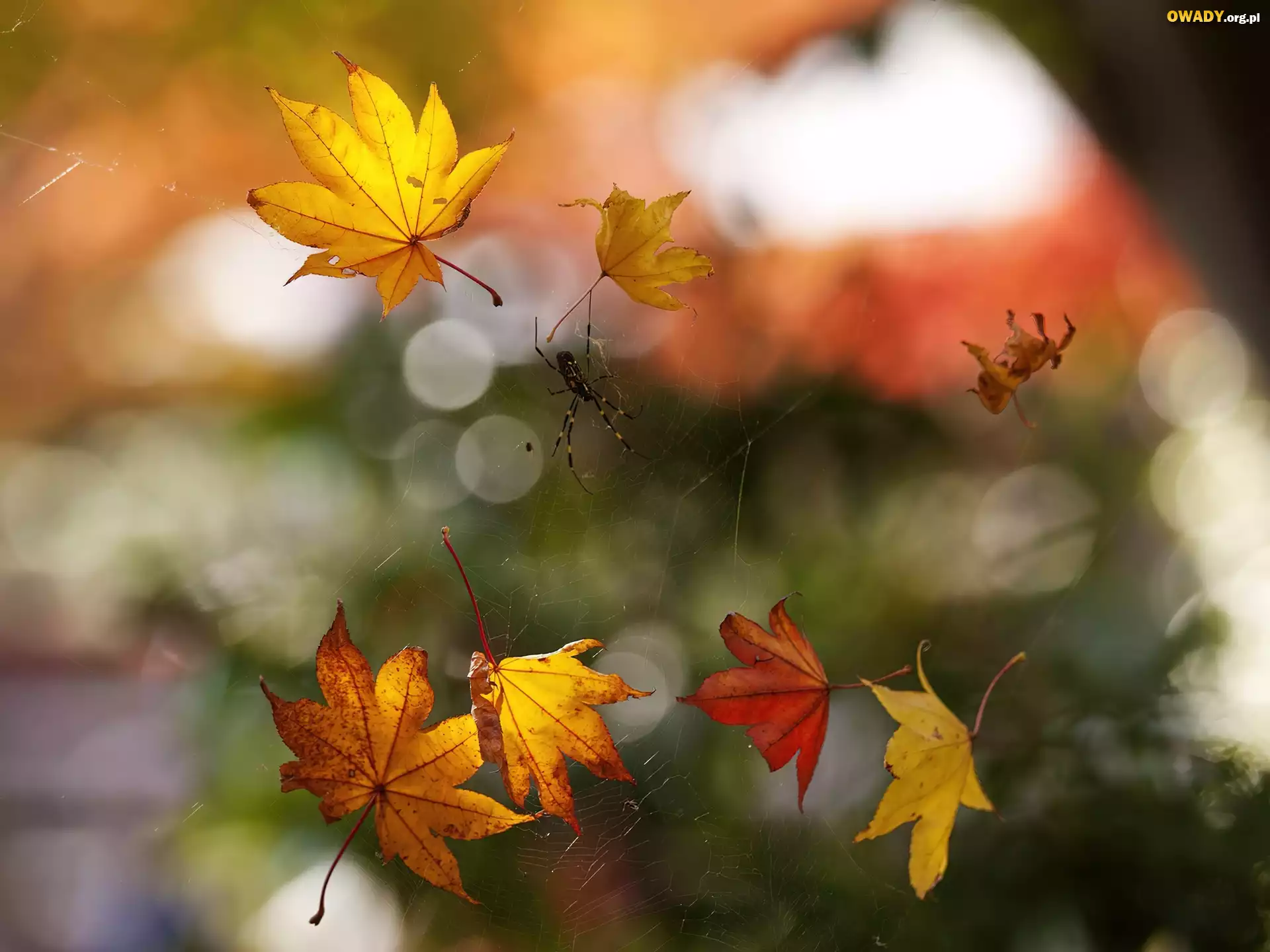 Jesienne, Liście, Pająki, Pajęczyna, Rozmycie