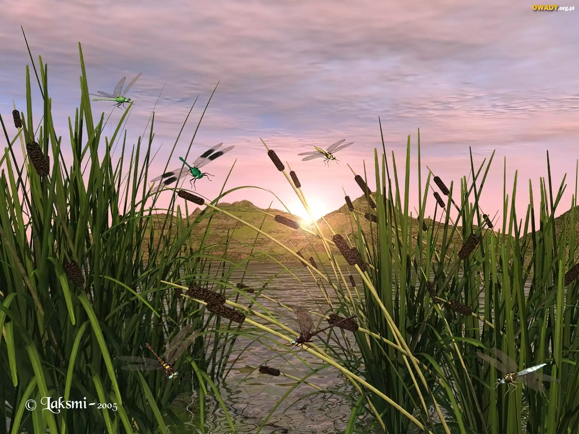 Jezioro, Tatarak, Ważki, 3D