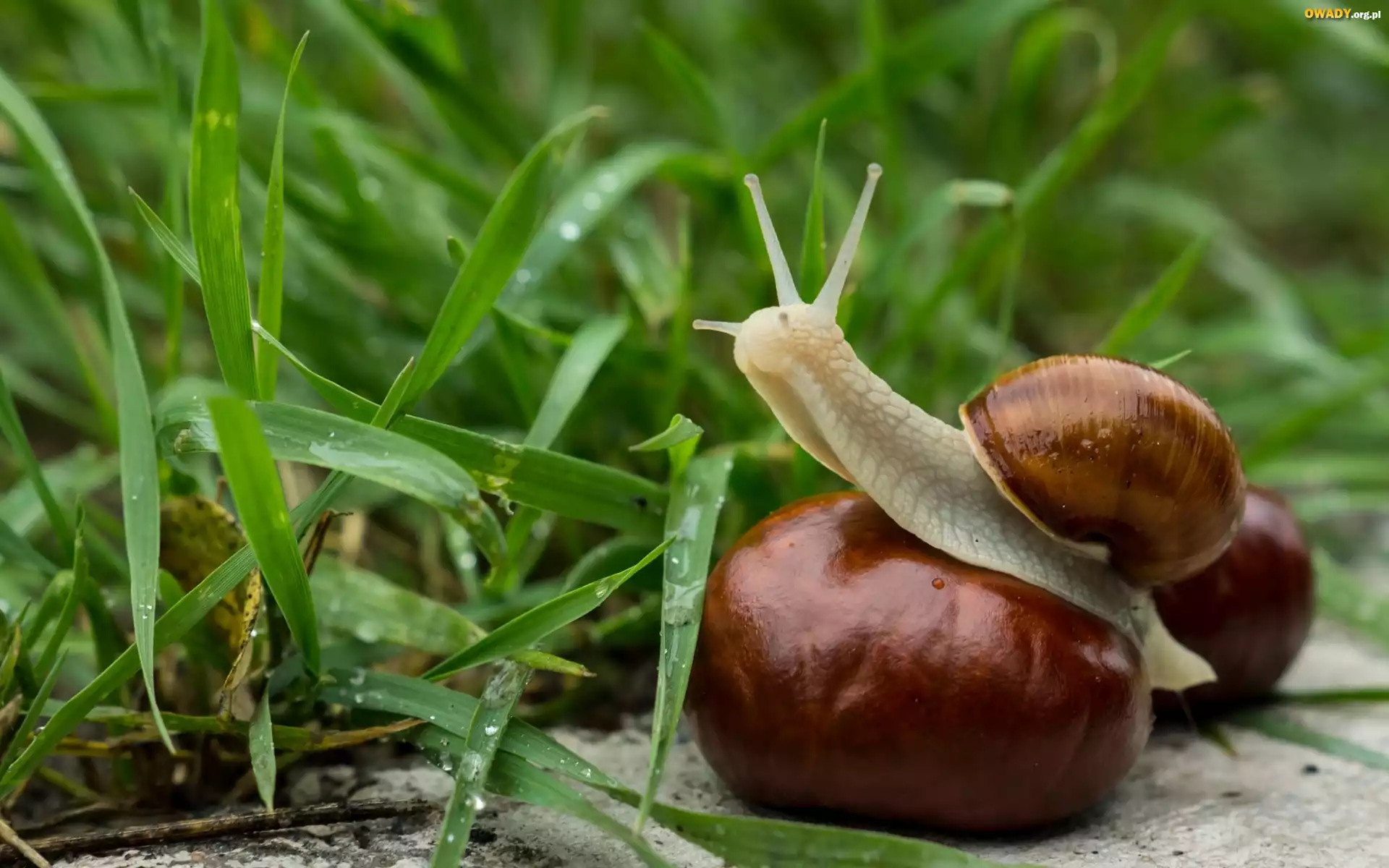 Ślimak, Kasztan, Trawa
