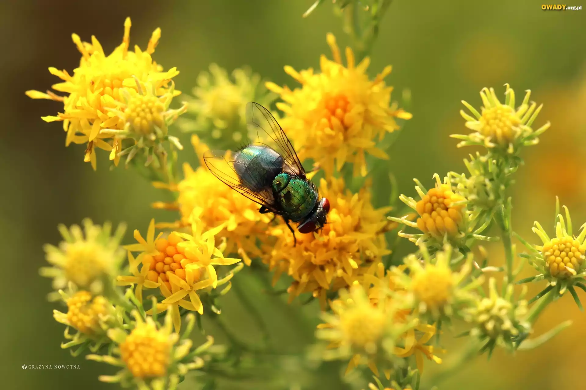 Kolorowa, Mucha, Owad, Kwiaty, Żółte