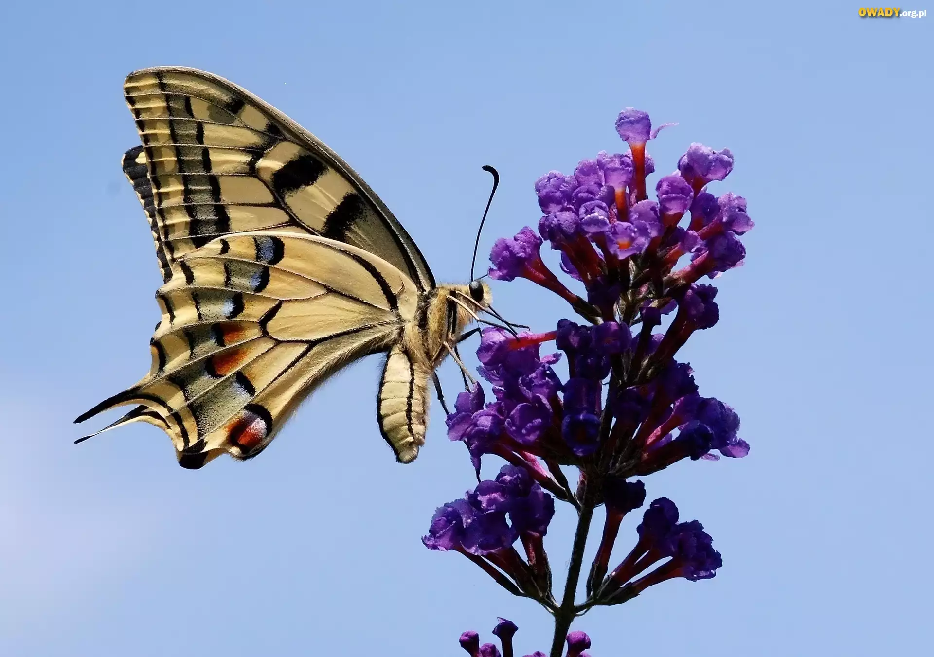 Kolorowy, Motyl, Paź królowej, Fioletowy, Kwiat