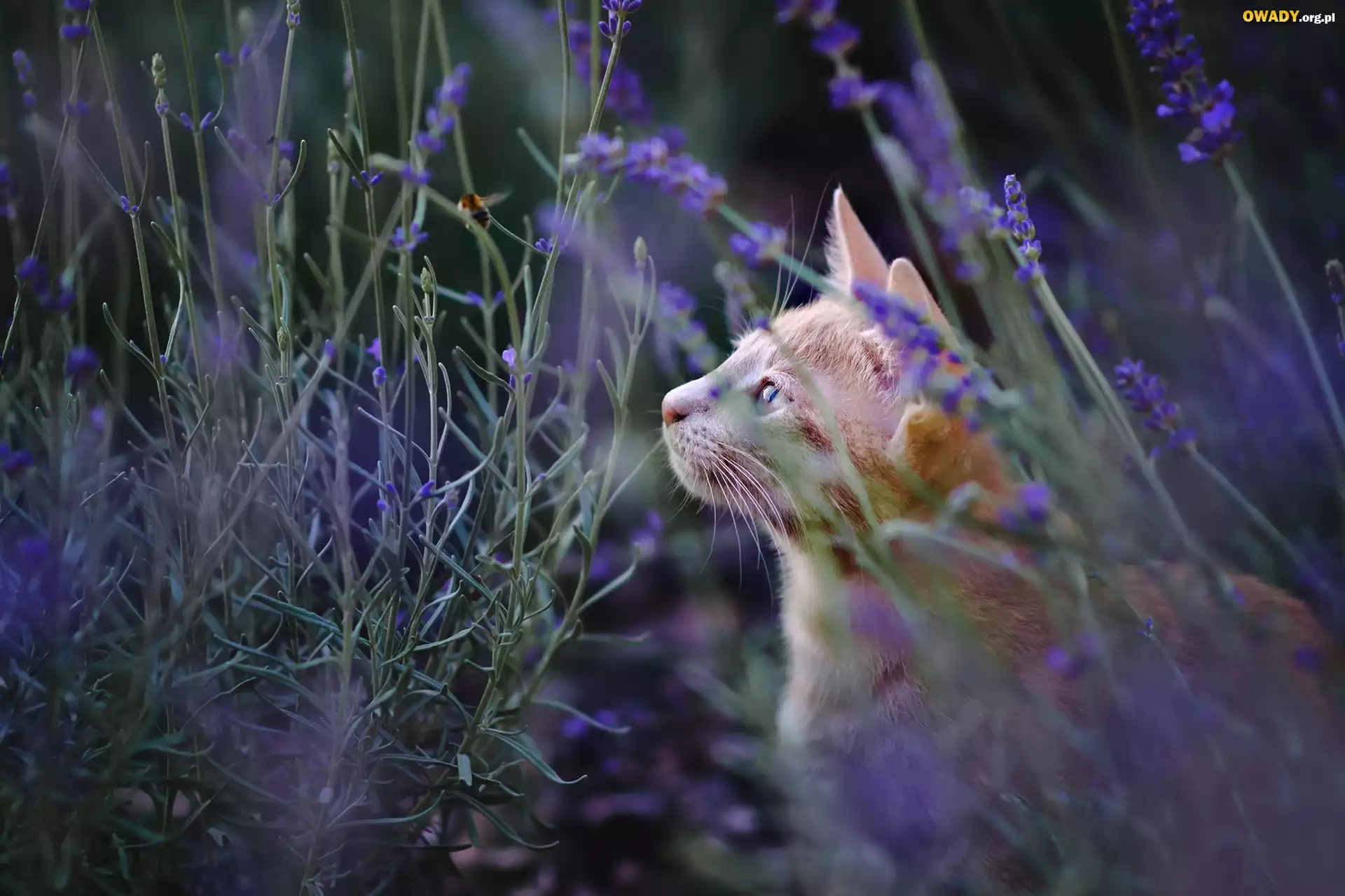 Kot, Pszczoła, Rośliny, Niebieskie, Kwiatki