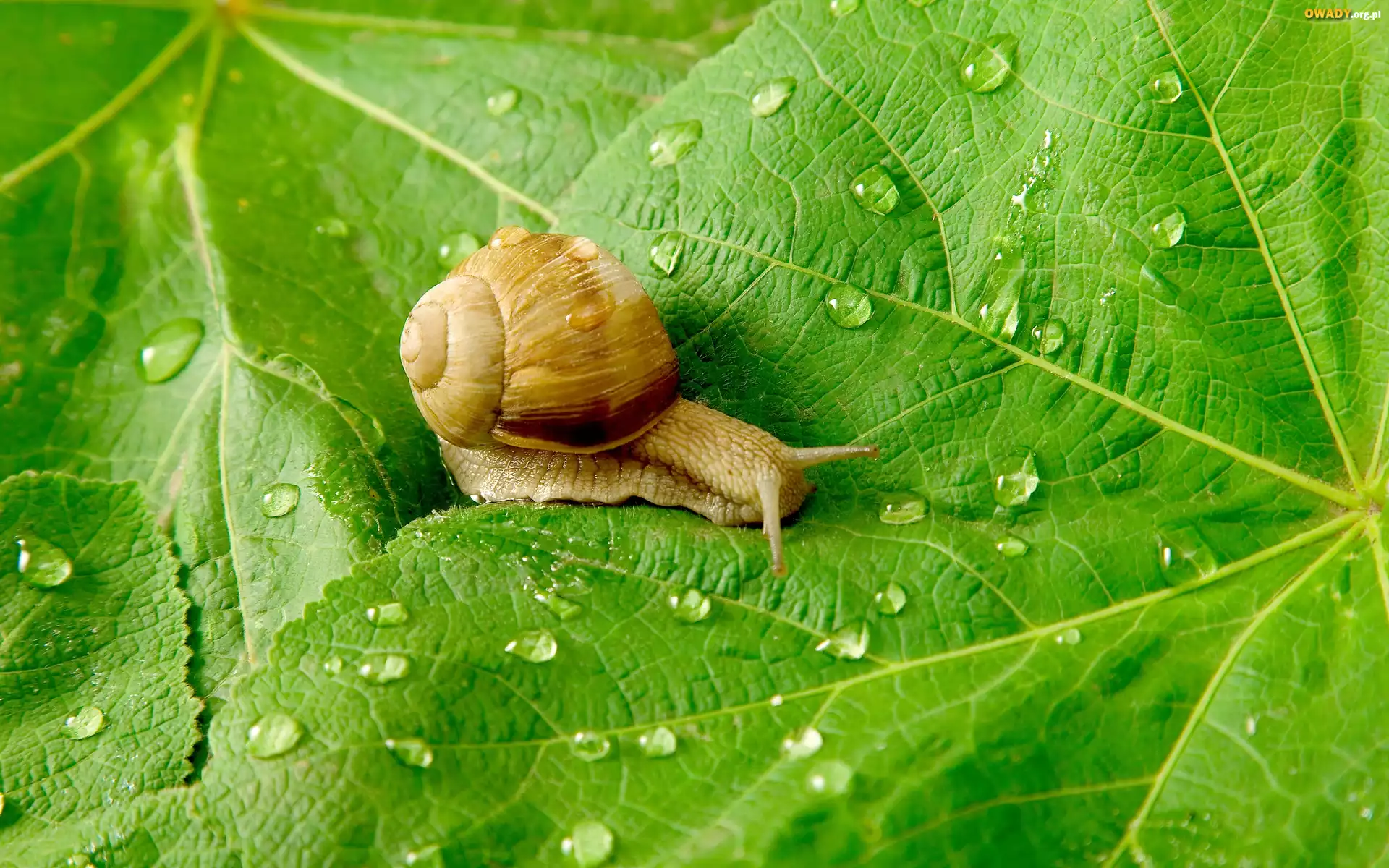 Ślimak, Liście, Krople, Deszczu