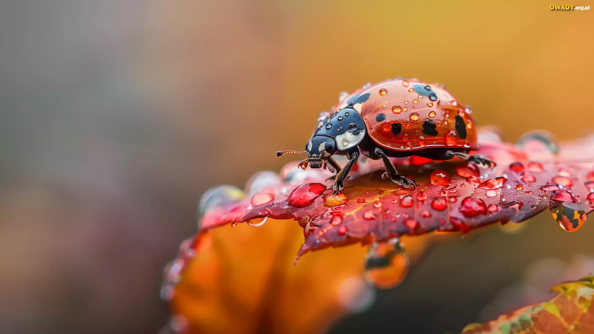 Biedronka, Krople, Rosa, Liść, Makro