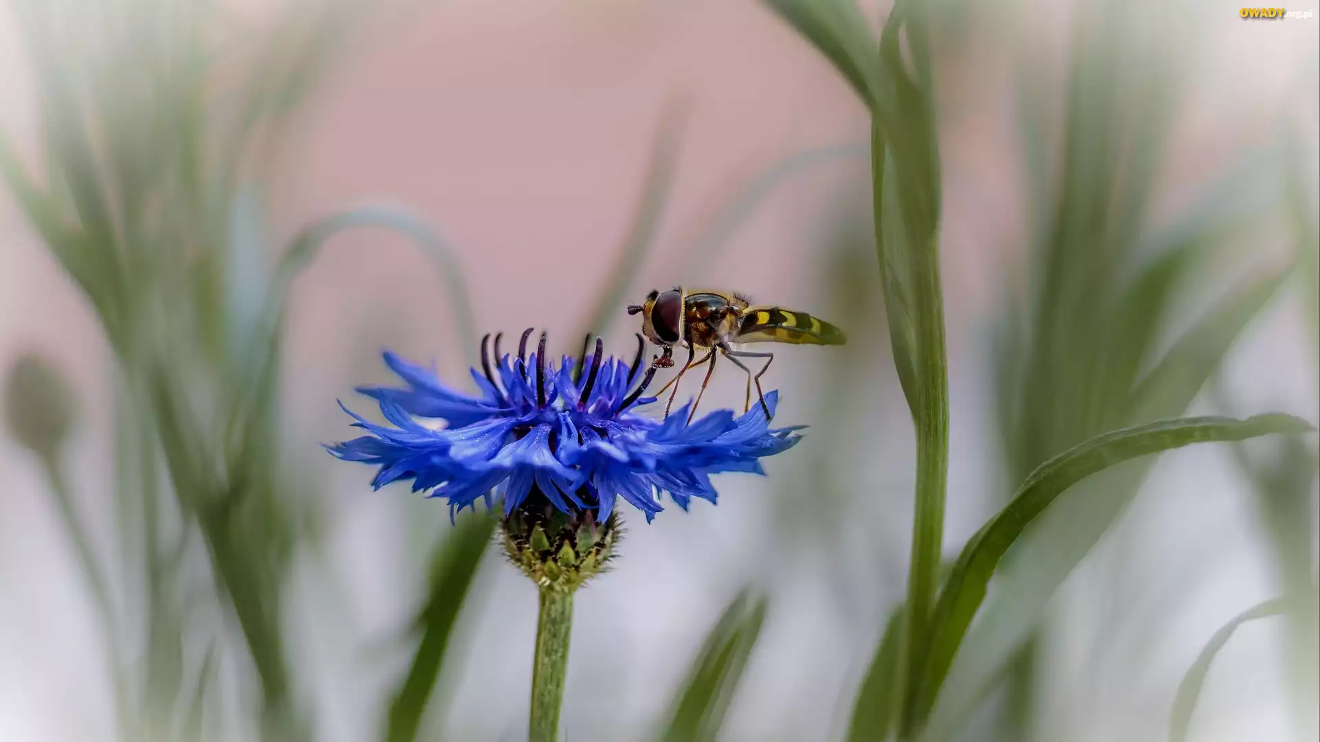 Owad, Bzyg brzęk, Kwiat, Chaber, Makro, Rozmycie