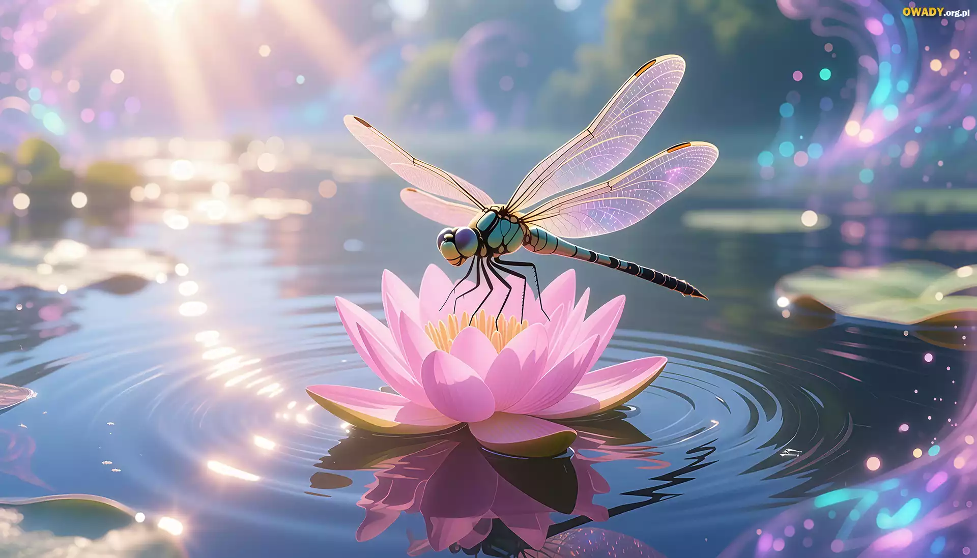 Ważka, Lilia wodna, Kwiat, Owad, Grafika