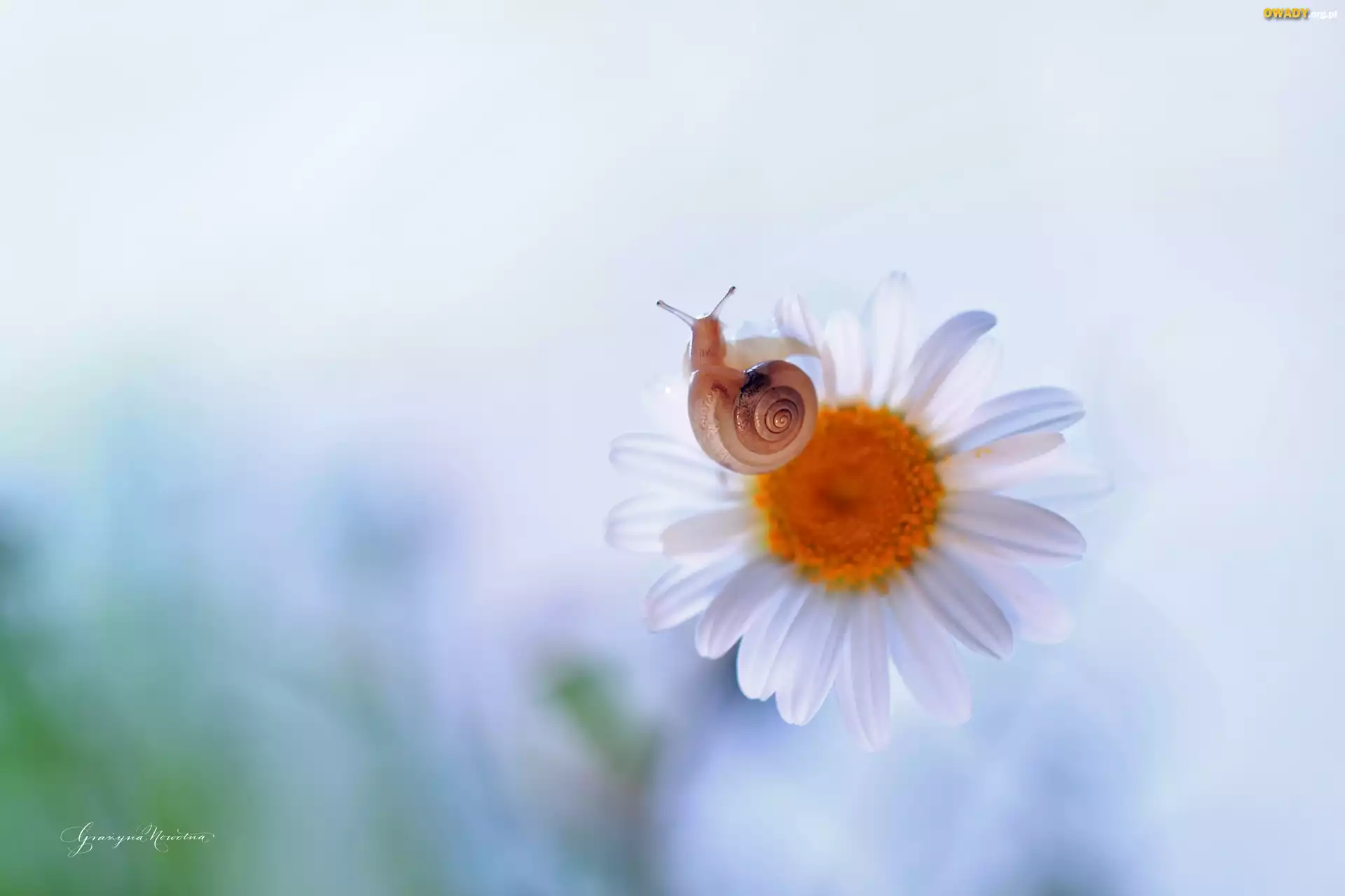 Ślimak, Margerytka, Kwiat, Biały