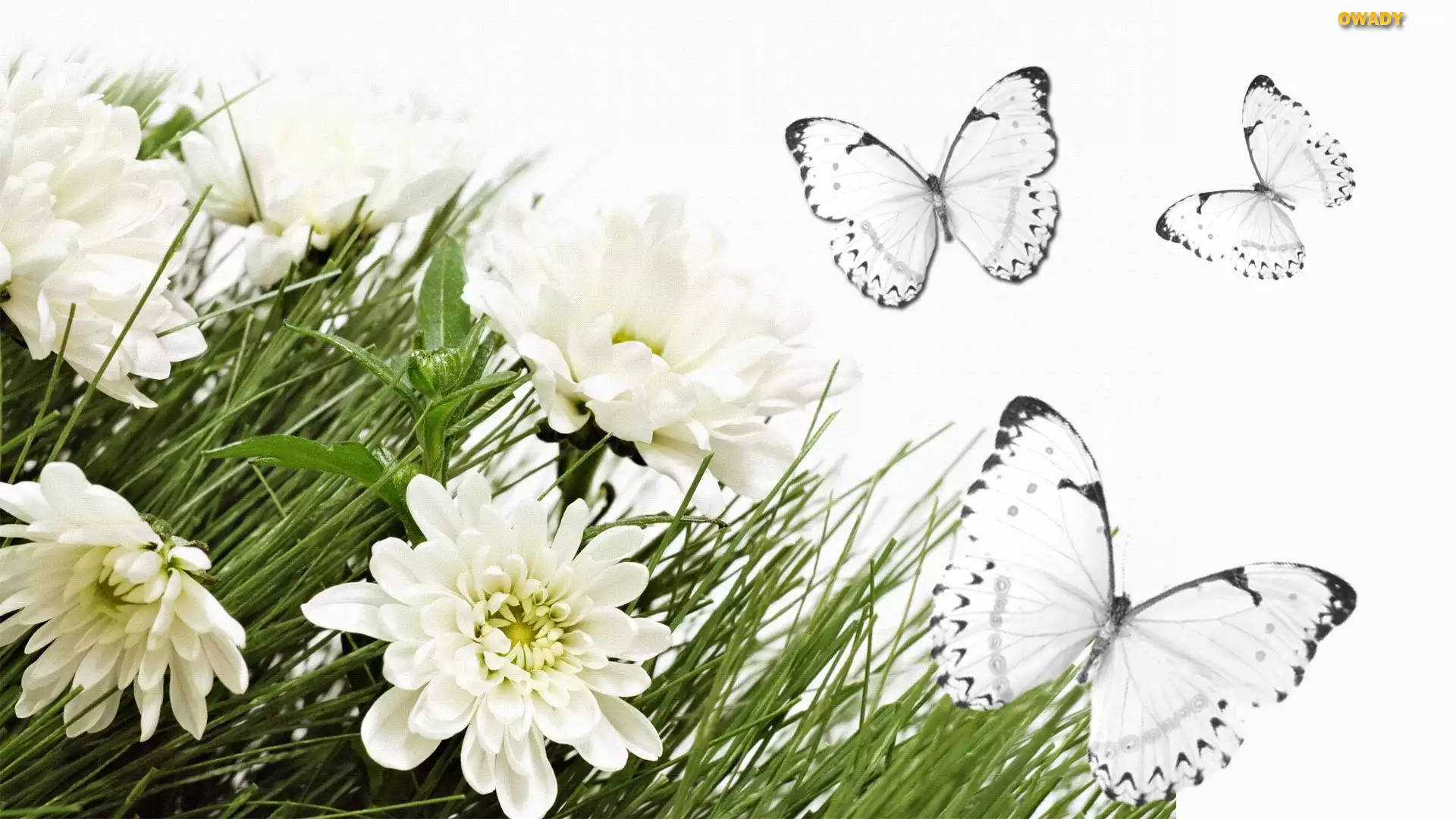 Białe, Kwiatki, Motyle