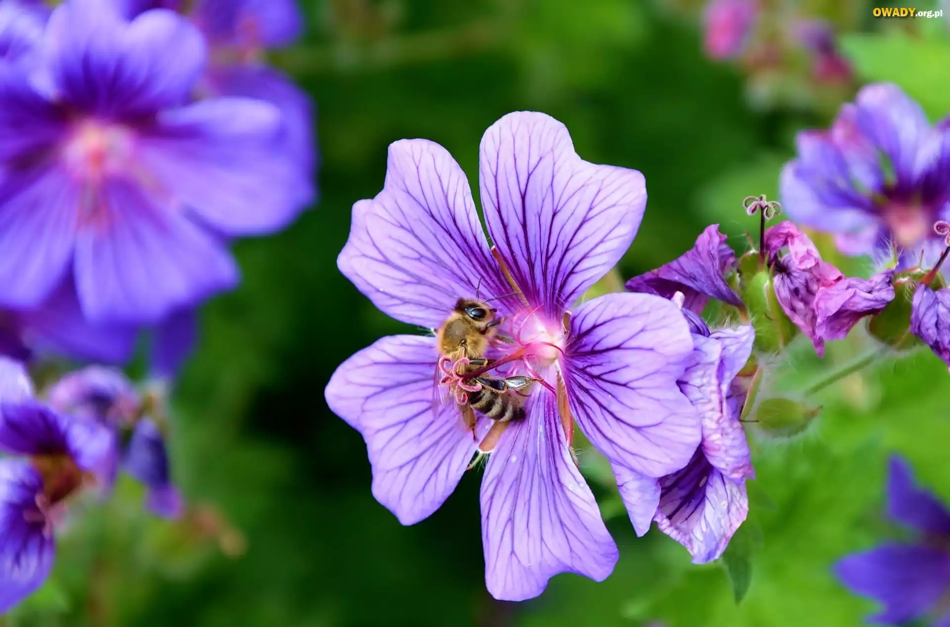 Fioletowe, Kwiatki, Pszczoła, Bodziszek