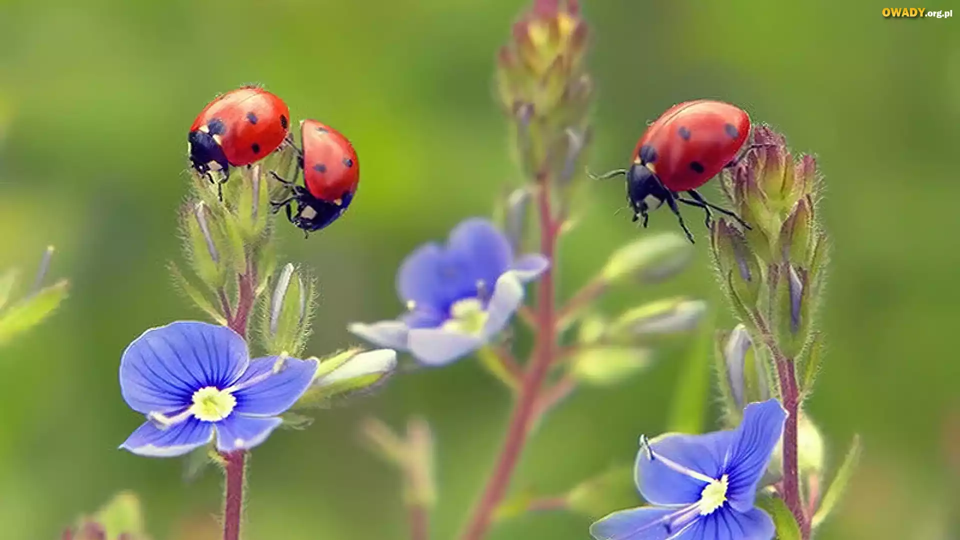 Niebieskie, Kwiatki, Biedronki