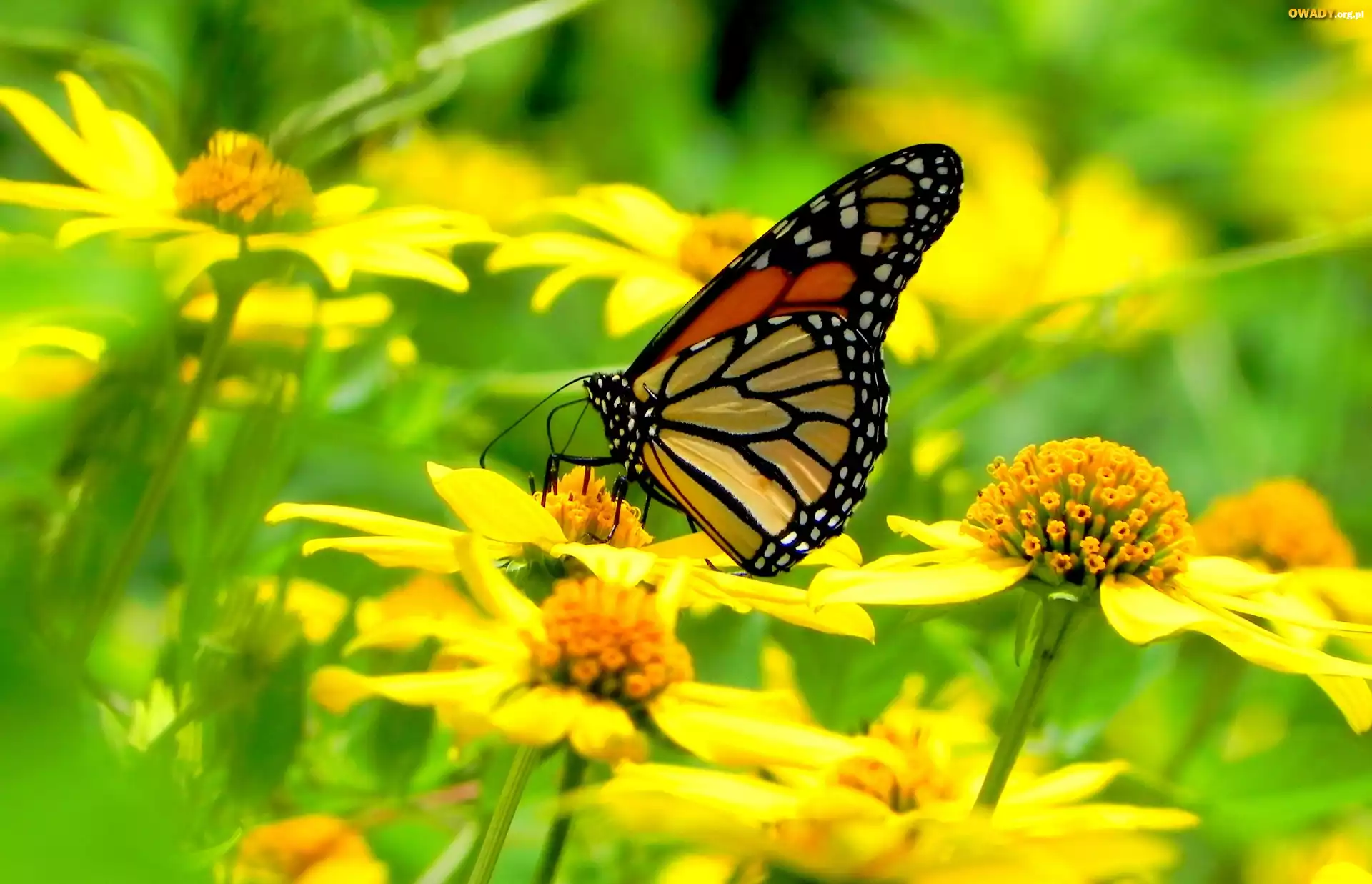 Żółte, Kwiatuszki, Motyl