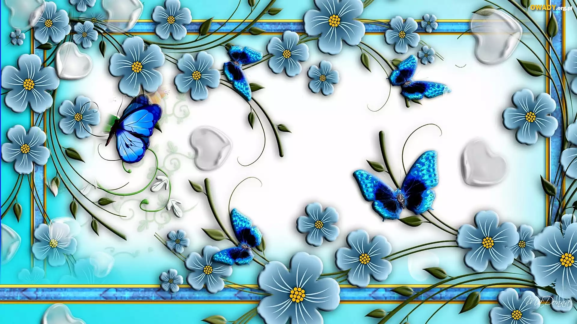 Kwiaty, Motyle, Błękitna, Abstrakcja