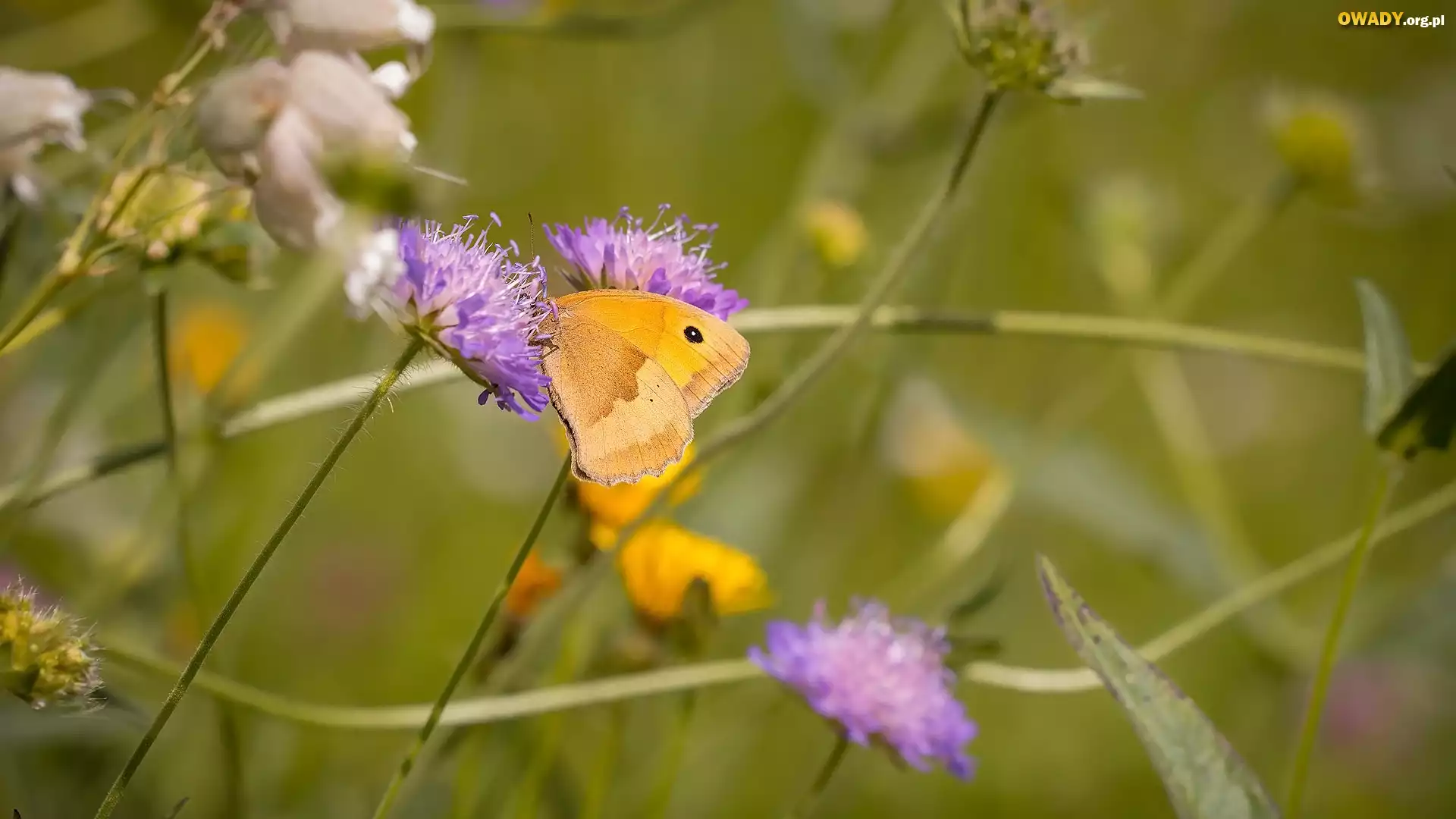 Fioletowe, Kwiaty, Motyl, Przestrojnik jurtina
