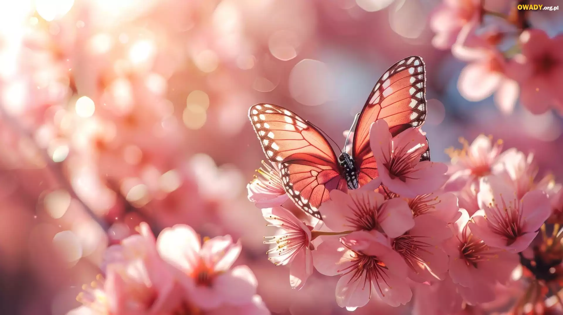 Różowe, Kwiaty, Różowy, Motyl, Grafika