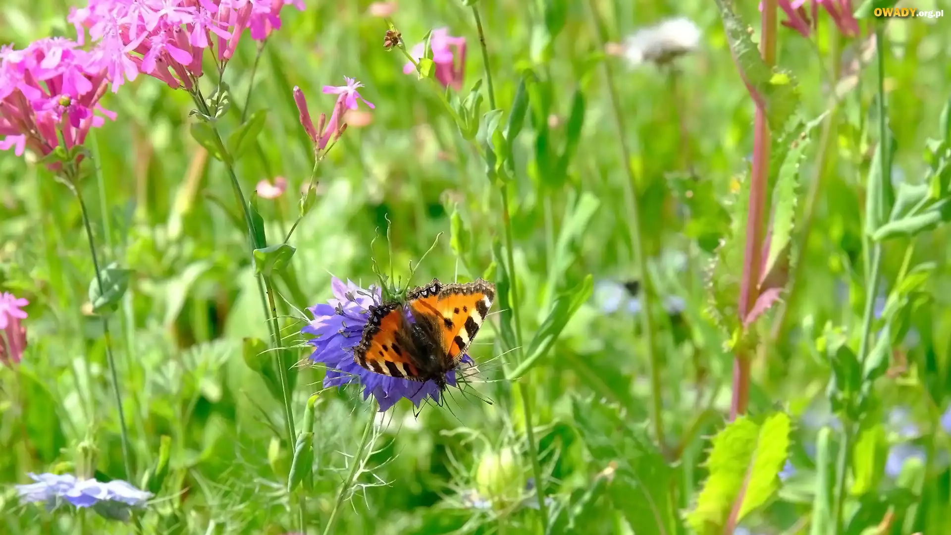 Kwiaty, Czarnuszka, Motyl, Rusałka chmielowiec