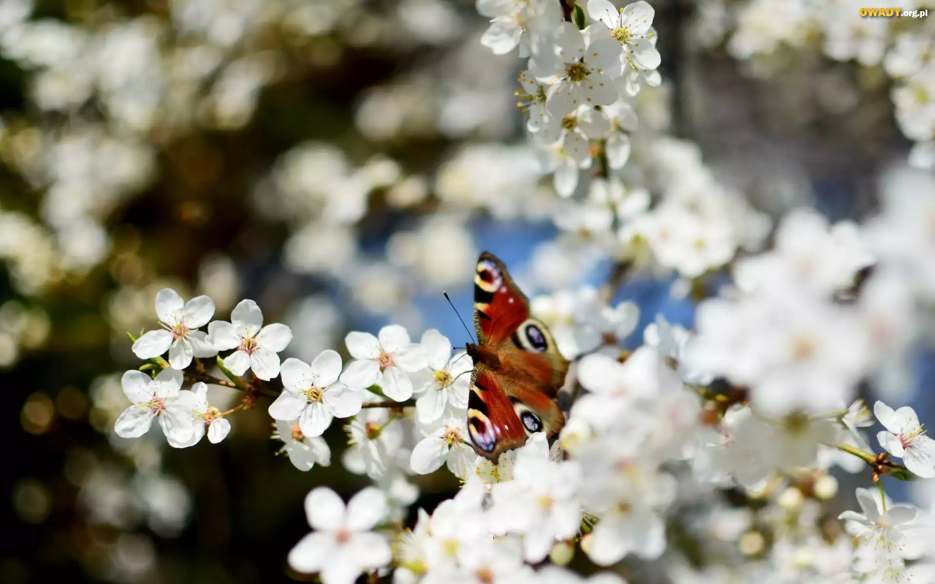 Kwitnace , Galazki, Drzewa, Wiosna, Motyl