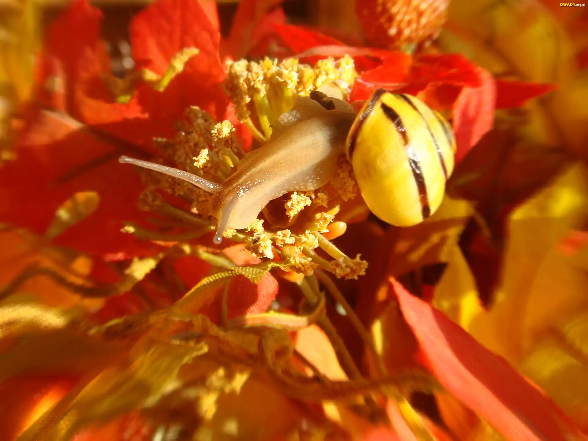 Mięczak, Ślimak, Wstężyk gajowy, Kwiat, Rozmyte, Tło