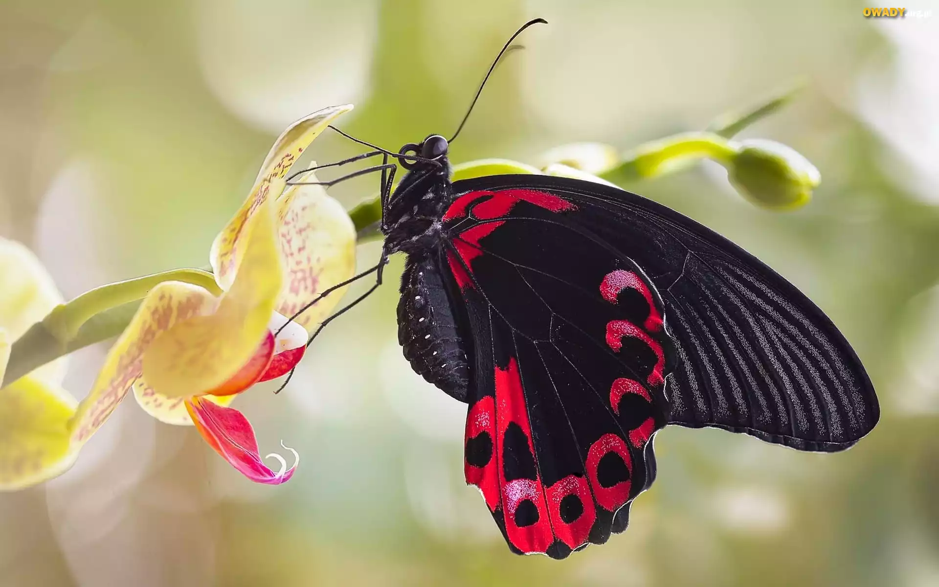 Czarny, Motyl, Czerwony Mormon, Papilio Rumanzovia, Storczyk, Makro