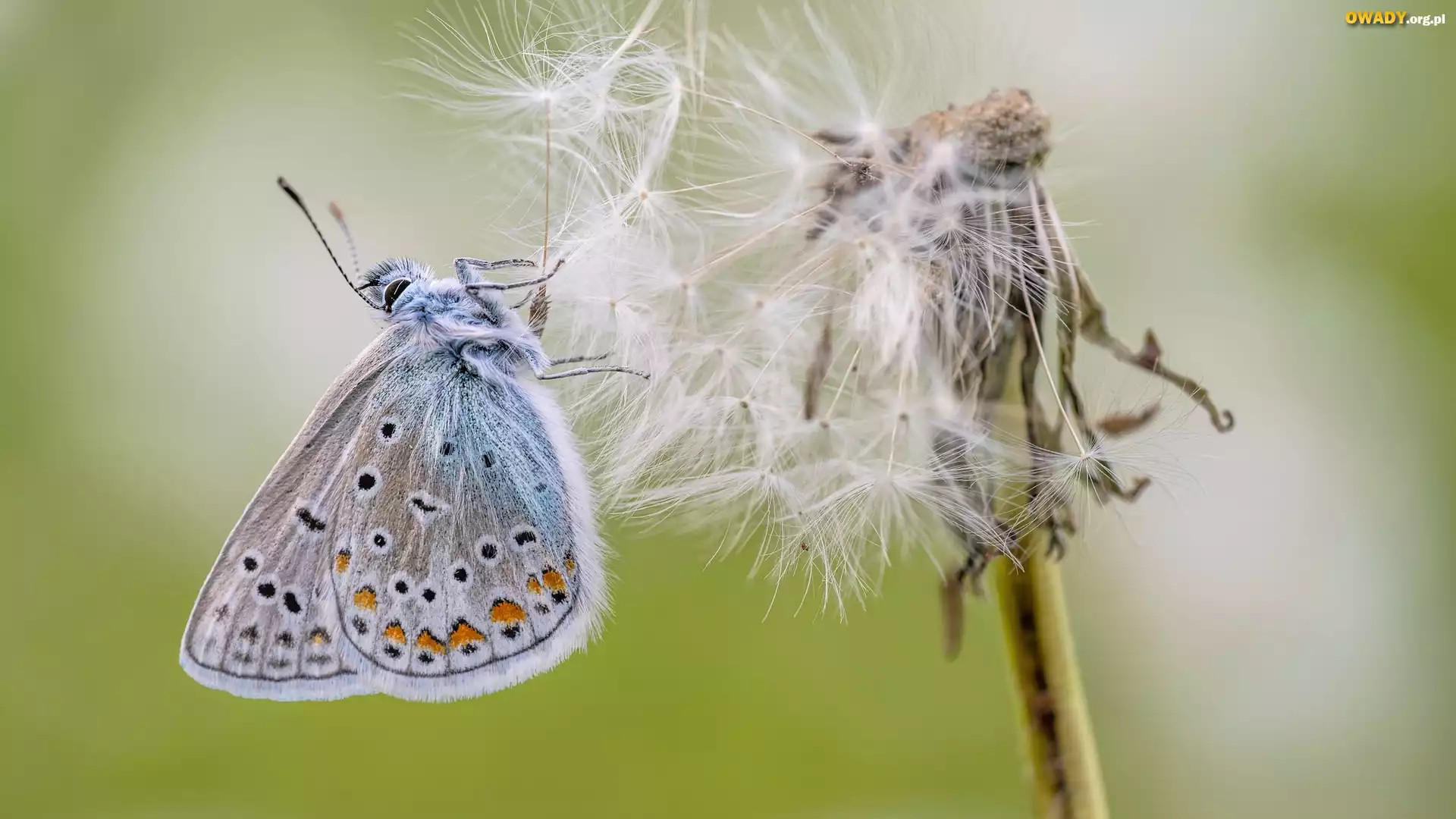 Motyl, Modraszek ikar, Dmuchawiec, Zbliżenie