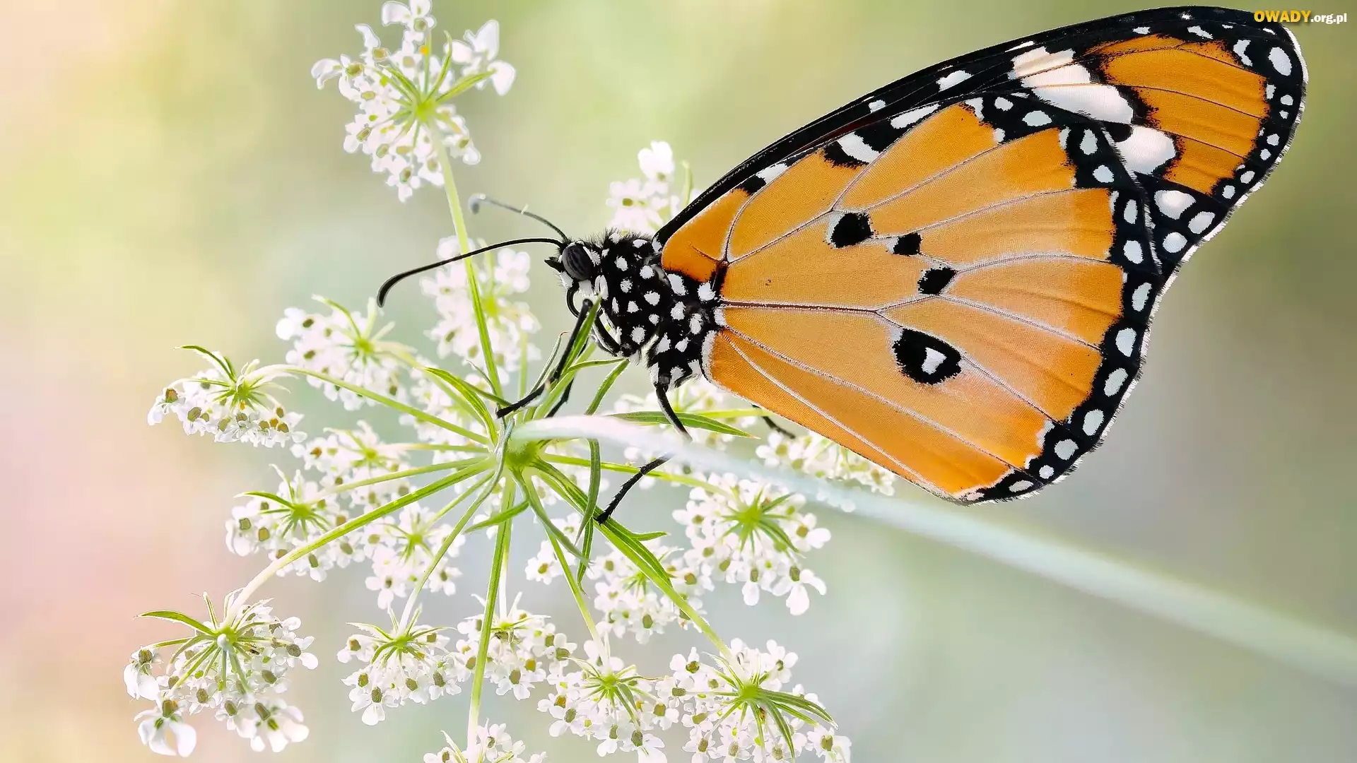 Motyl, Monarcha złocisty, Makro, Roślina, Dzika marchew, Rozmycie