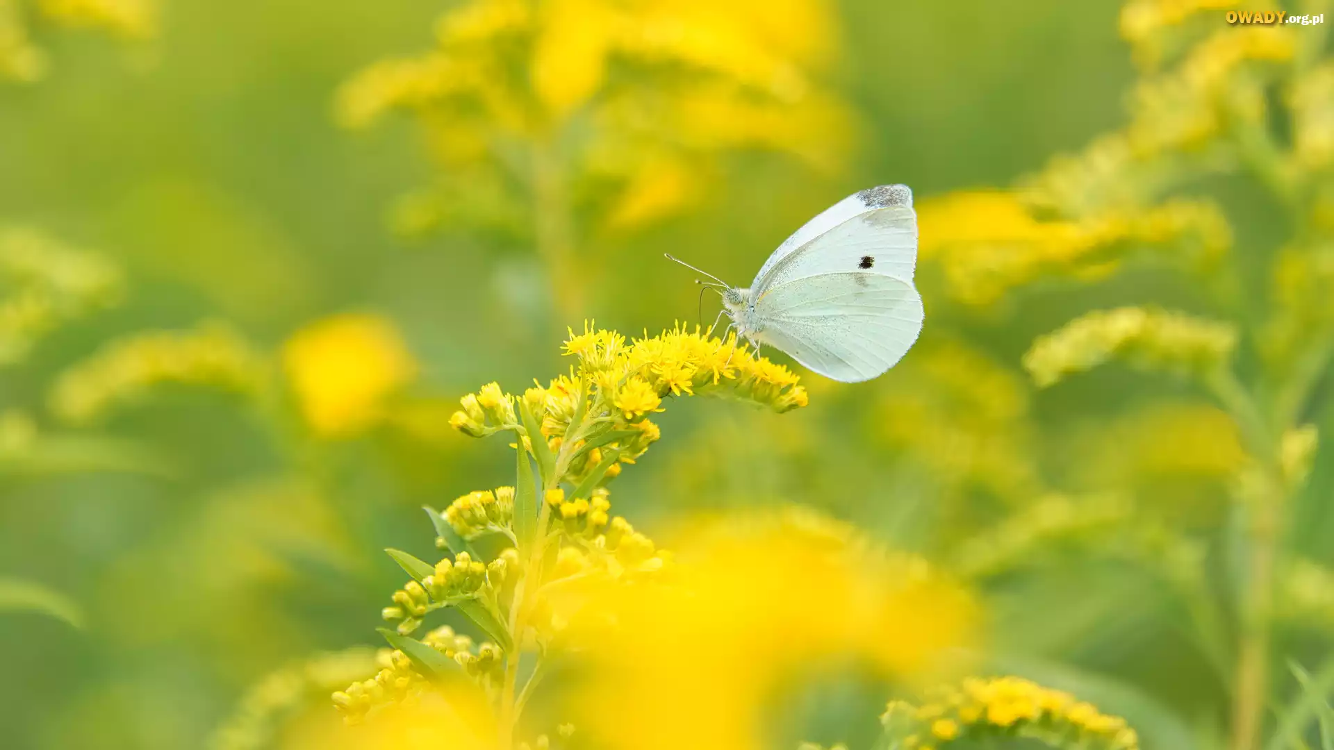 Biały, Motyl, Bielinek kapustnik, Żółta, Roślina, Nawłoć