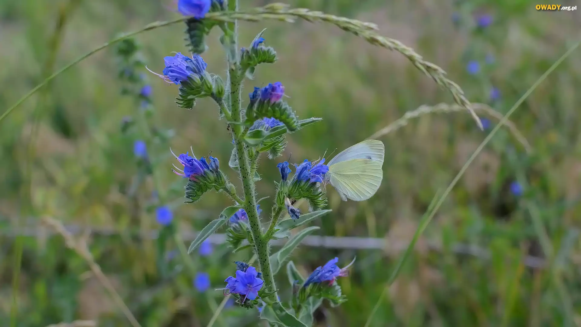 Kwiaty, Motyl, Bielinek rzepnik, Trawa
