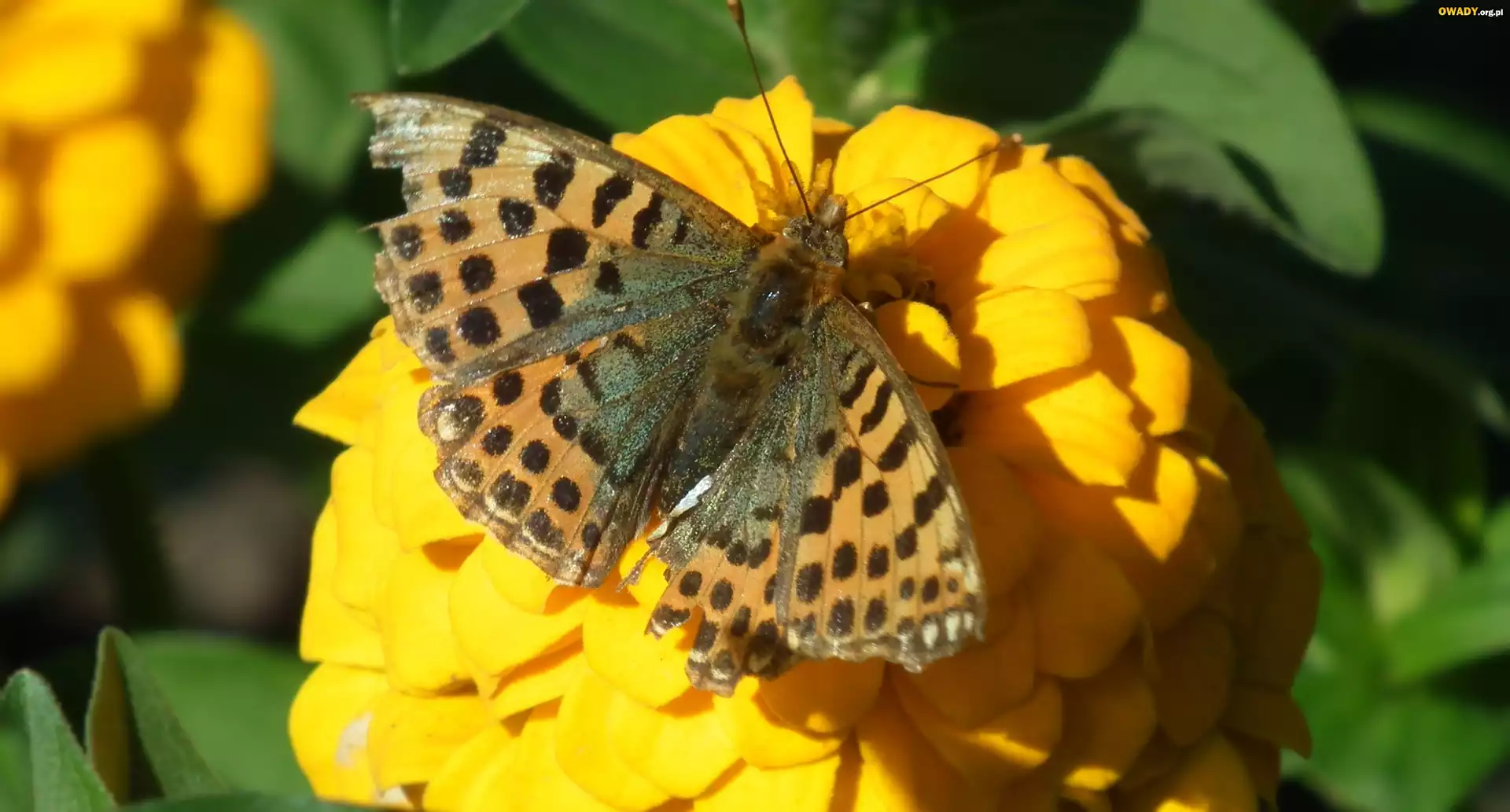 Motyl, Perłowiec malinowiec, Kwiat, Cynia, Żółta