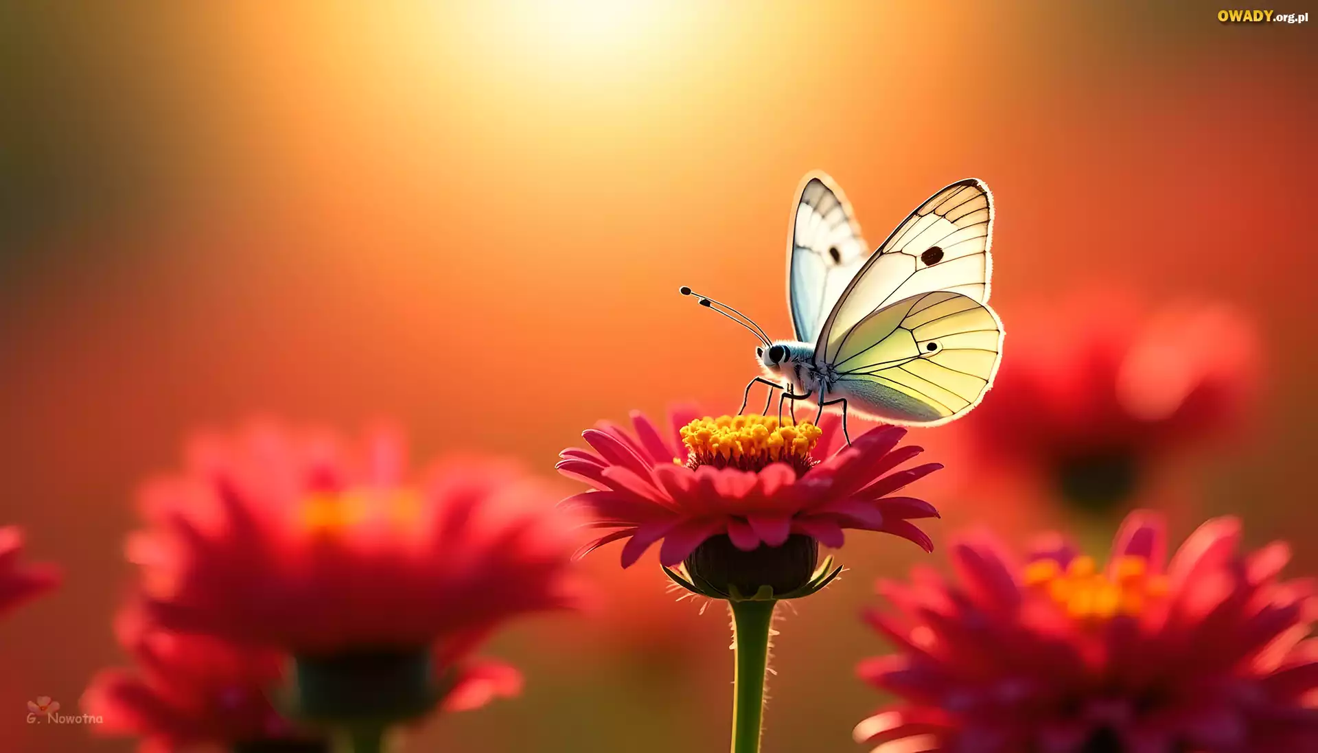 Biały, Motyl, Czerwony, Kwiat, Grafika