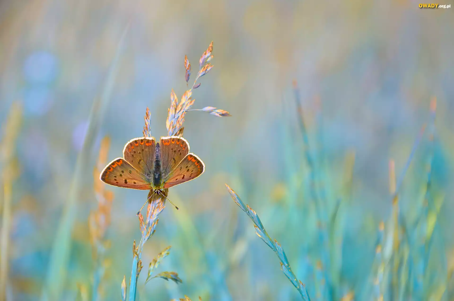 Motyl, Modraszek ikar, Źdźbła, Trawy