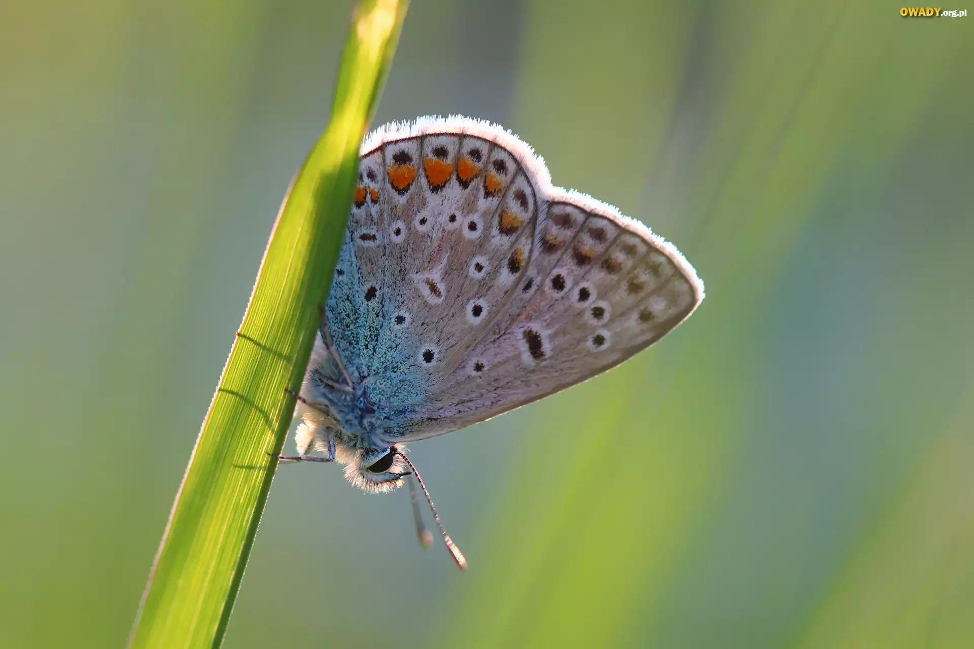 Motyl, Modraszek ikar, Źdźbło, Trawa