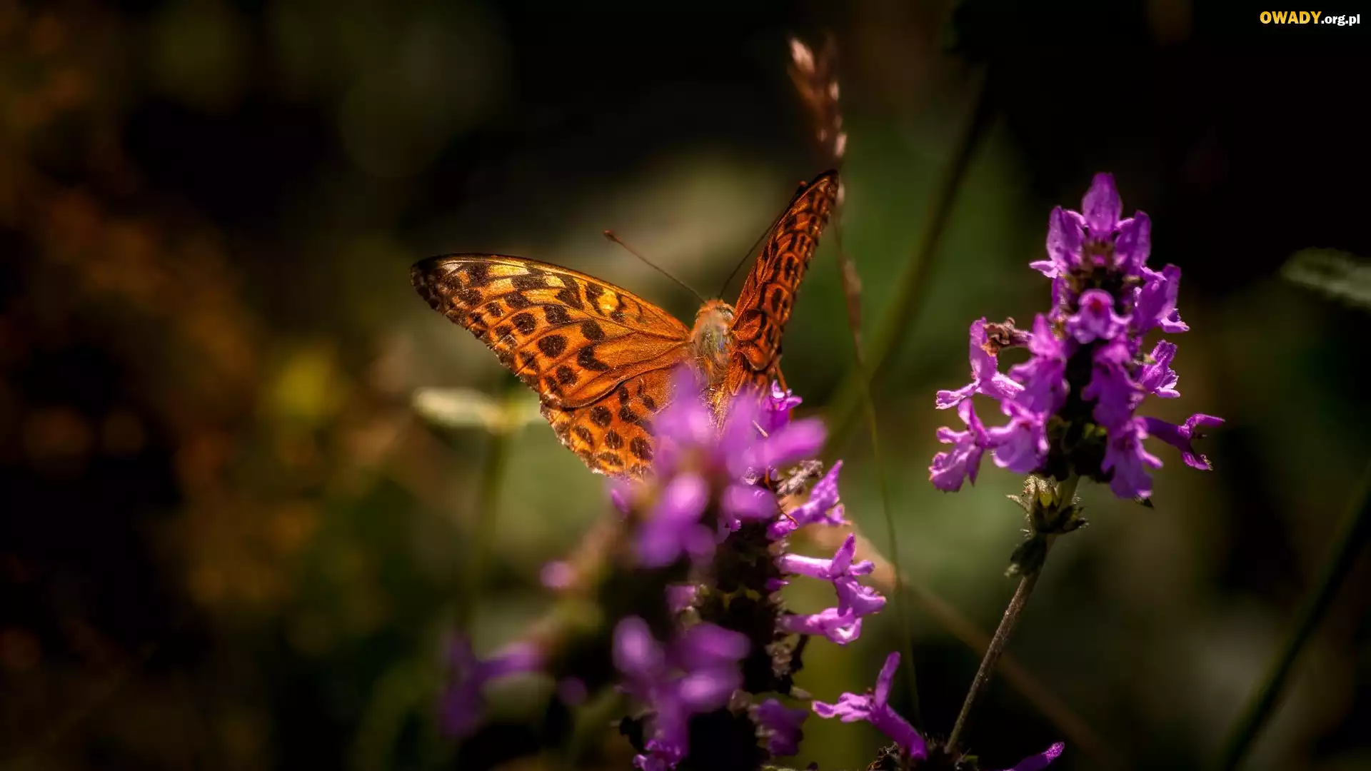 Motyl, Dostojka, Fioletowe, Kwiaty