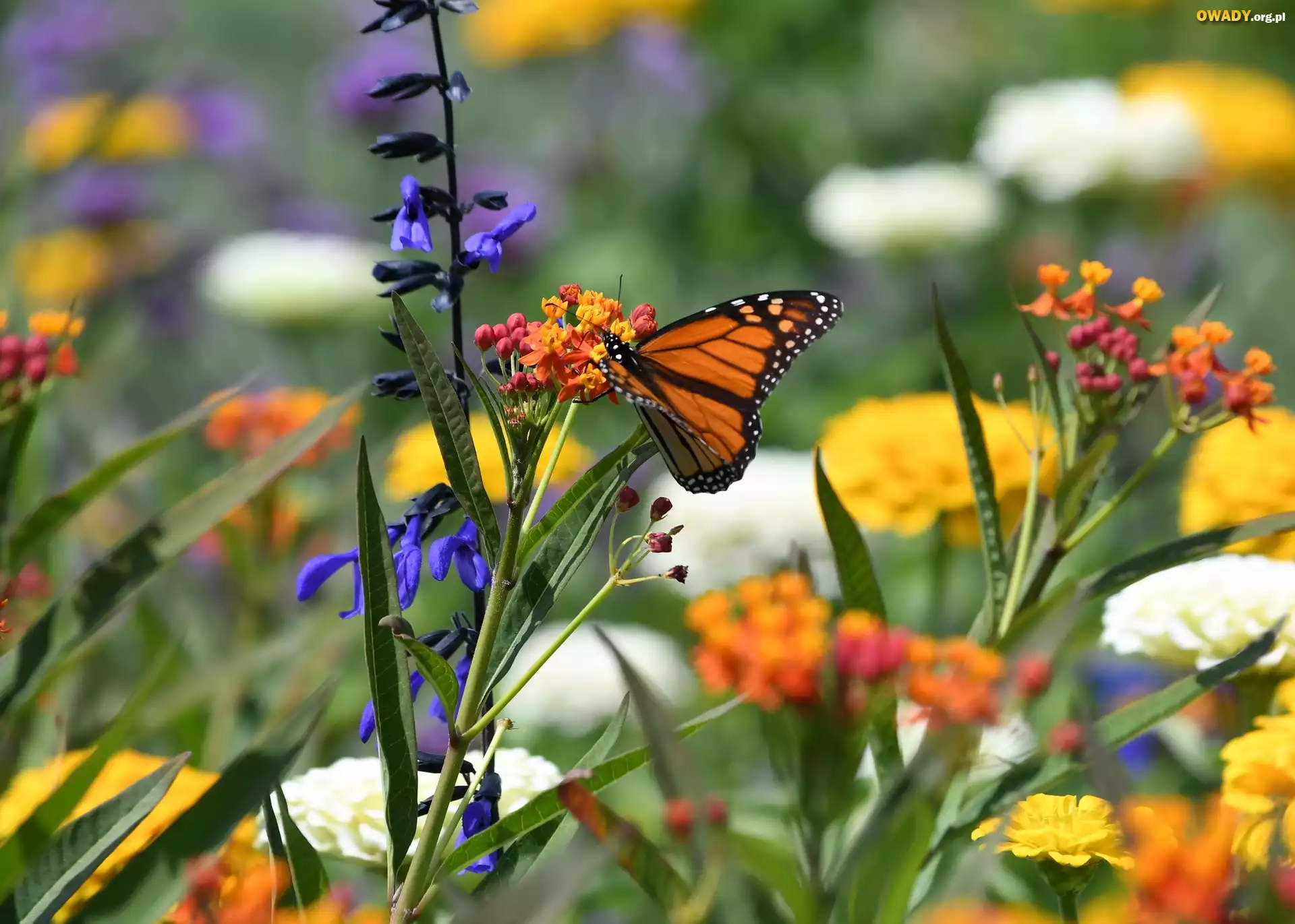 Motyl, Danaid wędrowny, Monarcha, Kolorowe, Kwiaty