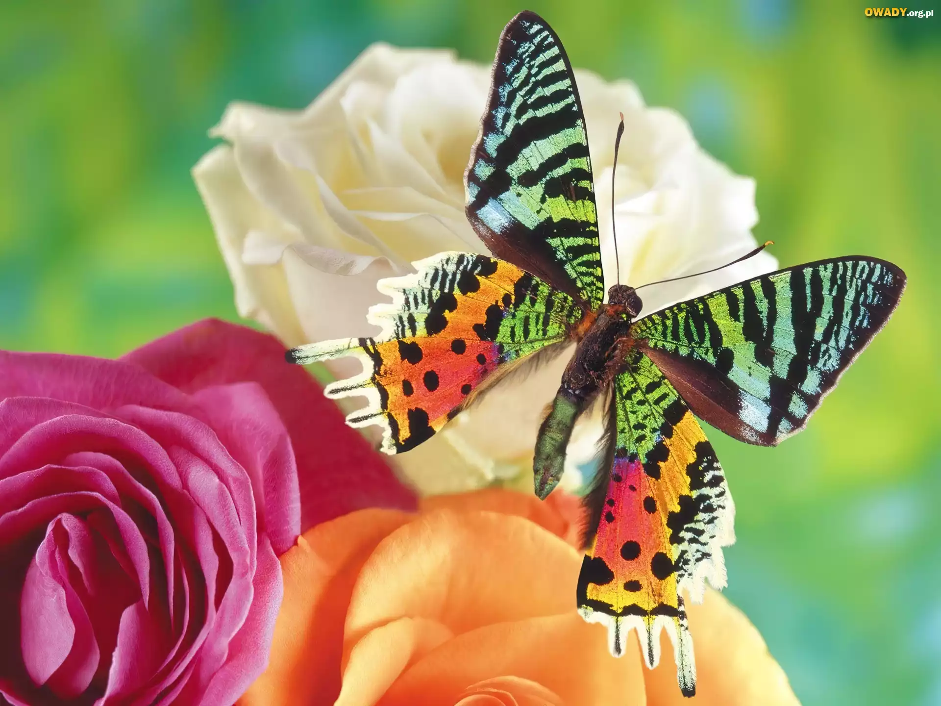 Kolorowy, Motyl, Kwiaty